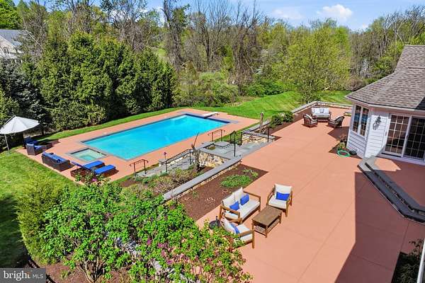 Welcome to 106 Nathaniel Lane, a stunning custom residence in the exclusive Stonebridge community-an enclave of just seven luxury homes set on a quiet cul-de-sac. Situated in the award-winning Unionville-Chadds Ford School District, this exceptional property offers convenient access to Longwood Gardens and the charming towns of Kennett Square, Chadds Ford, Glen Mills, West Chester, and Wilmington for premier shopping and dining. Set on 3.57 private acres, the home provides a serene, picturesque setting with expansive outdoor living spaces. A long circular driveway and elegant half-moon portico create a grand first impression. Inside, the thoughtfully designed floor plan offers four finished levels of refined living. The custom kitchen features cherry cabinetry, granite countertops, premium appliances including a Sub-Zero refrigerator, double ovens, and a gas cooktop. It opens seamlessly to a bright breakfast room with sliding doors leading to the patio and pool area, as well as a dramatic family room with cathedral ceilings, arched windows, and a striking stone, gas fireplace. A private office or den with built-in bookcases is tucked at the rear of the main level, along with additional conveniences including a rear staircase, mudroom, laundry room, and two powder rooms. The outdoor space is designed for exceptional indoor-outdoor living, showcasing a professionally landscaped yard, a custom two-level hardscaped patio, and a private pool and spa. Upstairs, the spacious primary suite offers a true retreat with a tray ceiling, dressing area, two large custom walk-in closets, and a luxurious bath featuring a jacuzzi tub, oversized walk-in shower, and private water closet. Four additional bedrooms are served by two Jack-and-Jill bathrooms. The fully finished third level provides versatile flex space ideal for a guest suite, home office, or studio, complete with a full bath and abundant storage. The walkout lower level expands the home's living space with an entertainment area, kitchenette/bar, game or fitness area, additional flex room or office, full bath, wine cellar, and direct access to the outdoors through French doors. A large unfinished area houses mechanical systems and offers additional storage. Additional highlights include a three-car garage, ample driveway parking, and numerous recent upgrades such as a fully finished third-floor suite with a second-zone HVAC system, extensive landscaping, a custom patio and pool installation, and completed stucco remediation with new fiber cement siding. This remarkable property offers the perfect blend of luxury, privacy, and convenience with no HOA-an exceptional opportunity to enjoy refined country living in the heart of Chester County.