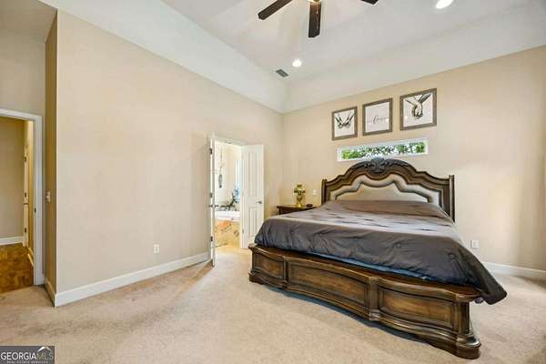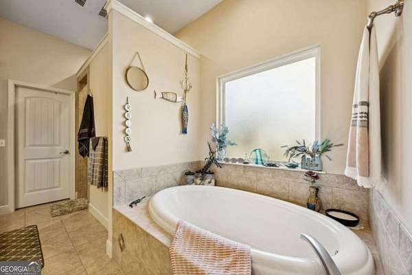 - Double Vanity, High Ceilings, Master On Main Level, Separate Shower, Soaking Tub, Tile Bath, Tray Ceiling(s), Walk-In Closet(s)