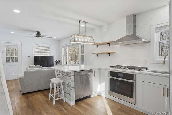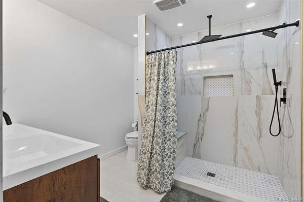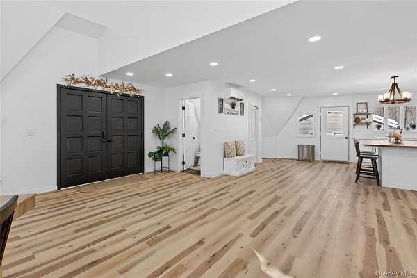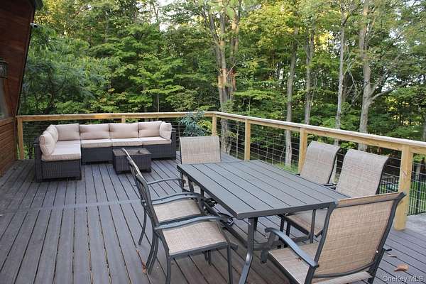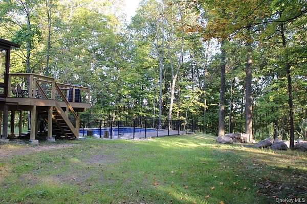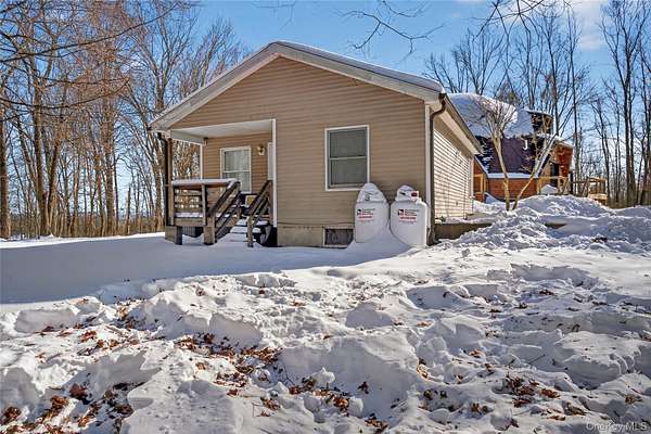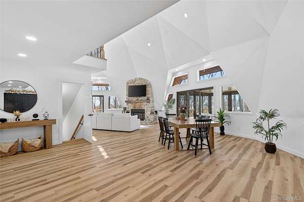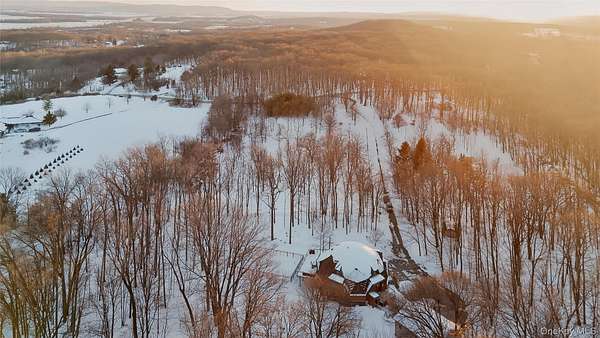 A Private Mini-Estate of Architectural Distinction in the Goshen School District. Set within the quiet preserve of over 10 acres of wooded grounds, this fully renovated architectural geodesic dome residence-known locally as The Wooden Igloo-offers a rare opportunity to own a true mini-estate that blends iconic design, modern luxury, and exceptional flexibility. Thoughtfully reimagined from top to bottom, the property delivers nearly 3,000 square feet of distinctive living space, complemented by a separate, legal 660 sf guest cottage. The main residence features five bedrooms and three-and-a-half bathrooms, designed with an open, flowing layout and 20+ ft, double-height ceilings that feel both expansive and calming. The main level is entirely open, ideal for both entertaining and quiet evenings at home. It is anchored by a wood-burning stone fireplace, generous living and dining areas, and a sunroom wrapped in full-height windows-a space that fills with natural light and warmth throughout the day while offering peaceful views of the surrounding landscape. A primary suite with a stand-alone whirlpool tub, shower, and dual vanity on the first floor adds ease and long-term livability. Above, three additional, very well-sized bedrooms and a full bath provide their own sense of separation and privacy. The fifth bedroom is down below, facing the walkout patio that links to the in-ground swimming pool. The rest of the lower level is purpose-built for both business and leisure, featuring a theater-style media space for movie nights, a dedicated home office, and plenty of flexibility that is well-suited for a gym, studio, or additional entertaining-quietly removed from the main living areas when privacy is desired. Throughout the home, multi-zone ductless heating and air conditioning ensure comfort year-round, making the space equally inviting in every season. Beyond the main residence, the estate includes a fully renovated, legal two-bedroom cottage with its own full bath, laundry, and independent heating and air conditioning. Ideal for extended family, guests, or staff, the cottage also offers the option for rental income, all while maintaining a comfortable sense of separation from the main home. The grounds invite you to slow down and enjoy the setting-relax by the swimming pool in the summer sun, explore the open acreage, or simply take in the stillness and privacy that only land of this scale can provide. There is also a distinct opportunity to possibly subdivide your property, if you so choose, to build additional homes for the ultimate compound, or to sell. Despite its serene, retreat-like atmosphere, the property is just 15 minutes from both Goshen and Middletown, offering convenient access to shopping, dining, healthcare, and major roadways, all while remaining within the highly regarded Goshen School District. Additionally, the home is only around 30 minutes to Stewart International Airport and Air National Guard Base, 25 minutes to Wodbury Commons with commuter bus routes to NYC, 1 hr 15 minutes for a direct commute to NYC, 40 minutes to West Point to watch Army Football, Hockey, and more, and just minutes from I-84 and I-87 access. Distinctive, tranquil, and meticulously updated, this one-of-a-kind mini-estate offers architectural significance, refined comfort, and rare flexibility-an exceptional opportunity for the discerning buyer seeking privacy, presence, and a true sense of place. Make it yours!