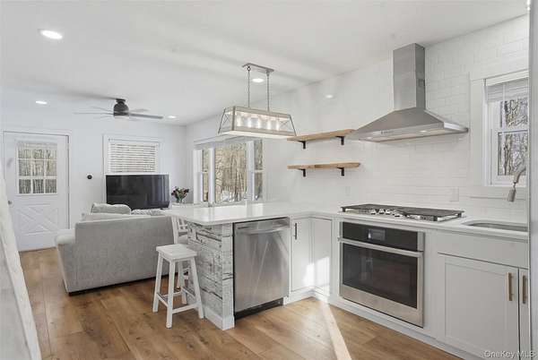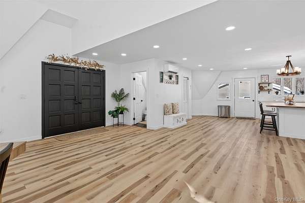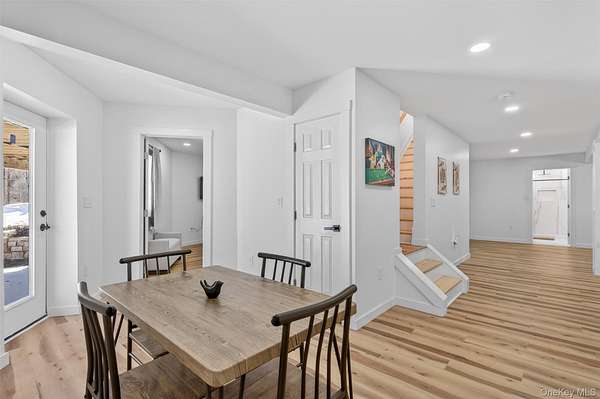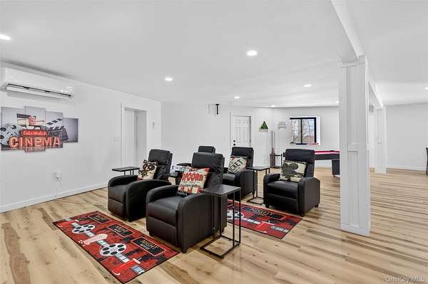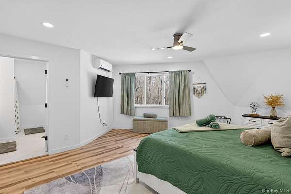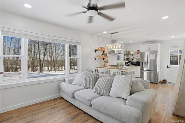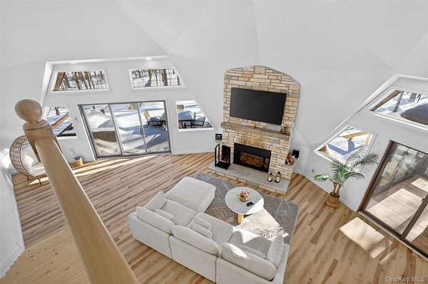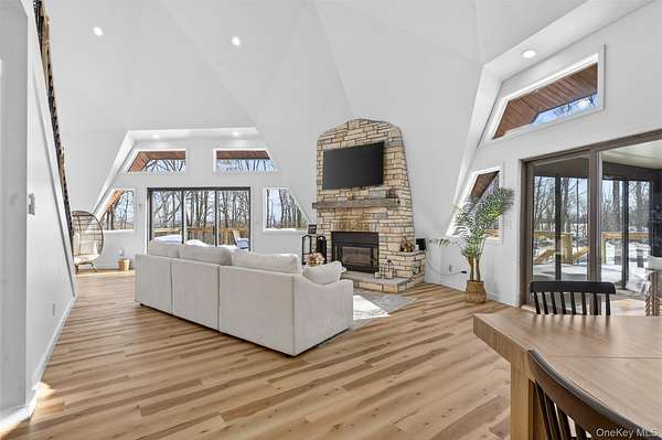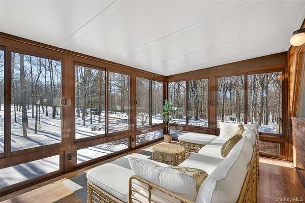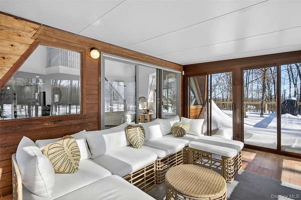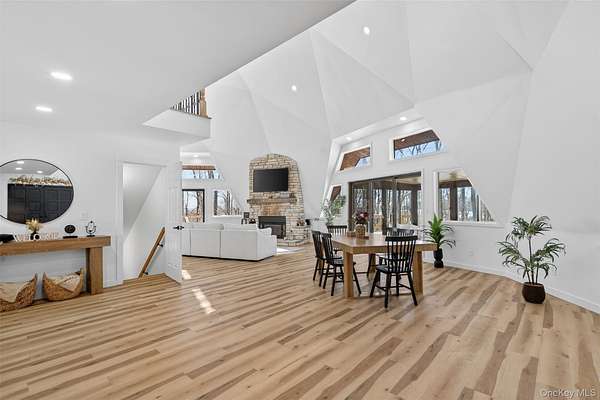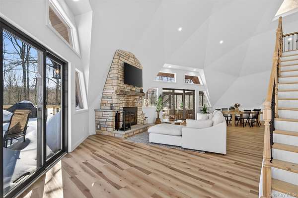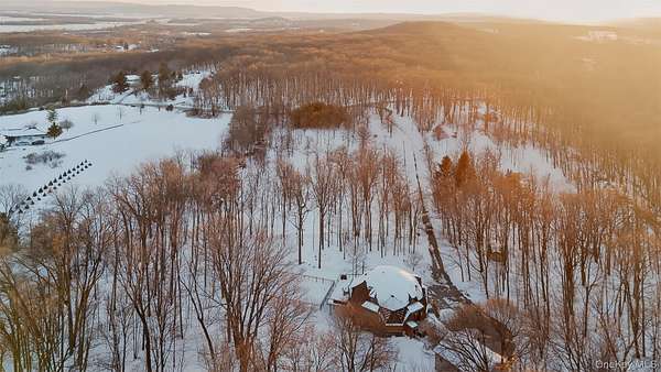 A Private Mini-Estate of Architectural Distinction in the Goshen School District. Set within the quiet preserve of over 17 acres of wooded grounds, this fully renovated architectural geodesic dome residence-known locally as The Wooden Igloo-offers a rare opportunity to own a true mini-estate that blends iconic design, modern luxury, and exceptional flexibility. Thoughtfully reimagined from top to bottom, the property delivers nearly 3,000 square feet of distinctive living space, complemented by a separate, legal 660 sf guest cottage. The main residence features five bedrooms and three-and-a-half bathrooms, designed with an open, flowing layout and 20+ ft, double-height ceilings that feel both expansive and calming. The main level is entirely open, ideal for both entertaining and quiet evenings at home. It is anchored by a wood-burning stone fireplace, generous living and dining areas, and a sunroom wrapped in full-height windows-a space that fills with natural light and warmth throughout the day while offering peaceful views of the surrounding landscape. A primary suite with a stand-alone whirlpool tub, shower, and dual vanity on the first floor adds ease and long-term livability. Above, three additional, very well-sized bedrooms and a full bath provide their own sense of separation and privacy. The fifth bedroom is down below, facing the walkout patio that links to the in-ground swimming pool. The rest of the lower level is purpose-built for both business and leisure, featuring a theater-style media space for movie nights, a dedicated home office, and plenty of flexibility that is well-suited for a gym, studio, or additional entertaining-quietly removed from the main living areas when privacy is desired. Throughout the home, multi-zone ductless heating and air conditioning ensure comfort year-round, making the space equally inviting in every season. Beyond the main residence, the estate includes a fully renovated, legal two-bedroom cottage with its own full bath, laundry, and independent heating and air conditioning. Ideal for extended family, guests, or staff, the cottage also offers the option for rental income, all while maintaining a comfortable sense of separation from the main home. The grounds invite you to slow down and enjoy the setting-relax by the swimming pool in the summer sun, explore the open acreage, or simply take in the stillness and privacy that only land of this scale can provide. There is also a distinct opportunity to possibly subdivide your property, if you so choose, to build additional homes for the ultimate compound, or to sell. Despite its serene, retreat-like atmosphere, the property is just 15 minutes from both Goshen and Middletown, offering convenient access to shopping, dining, healthcare, and major roadways, all while remaining within the highly regarded Goshen School District. Additionally, the home is only around 30 minutes to Stewart International Airport and Air National Guard Base, 25 minutes to Wodbury Commons with commuter bus routes to NYC, 1 hr 15 minutes for a direct commute to NYC, 40 minutes to West Point to watch Army Football, Hockey, and more, and just minutes from I-84 and I-87 access. Distinctive, tranquil, and meticulously updated, this one-of-a-kind mini-estate offers architectural significance, refined comfort, and rare flexibility-an exceptional opportunity for the discerning buyer seeking privacy, presence, and a true sense of place. Make it yours!