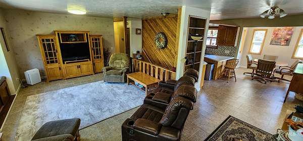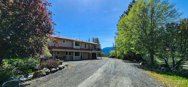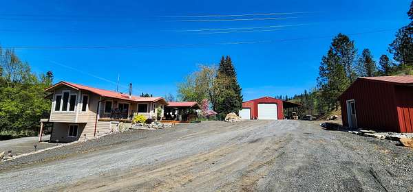 Beautifully renovated home offers 4 bdrms - 2 are ensuites (1 upper main level, 1 in daylight basement lower level w/separate ground floor entrance), 2 separate office/den spaces, massive light filled great room, plus kitchen & living room w/window seat all surrounded by 3 decks with exceptional river & mountain views. LARGE HEATED 34x36 shop w/electricity + 1 Lean-tos. Additional storage pump house, landscaping & gardening areas, NO HOAS or CCRs. Metal Roof. 2024 new heat pump/furnace/ac. Newer siding & bathrooms. Fenced areas for livestock. Currently used for home excavation business - LOTS of parking area available in addition to shop and private driveways at front and rear of home. Lower level ensuite also great for home business or air b&b with separate entrance (1/2 bath could be converted to full. Was used as beauty salon). Multi-generational living set up w/two ensuites! Artisian well. Views from every window! 10 Adjacent Acres Available. 2 car attached tandem garage, 4 car shop.