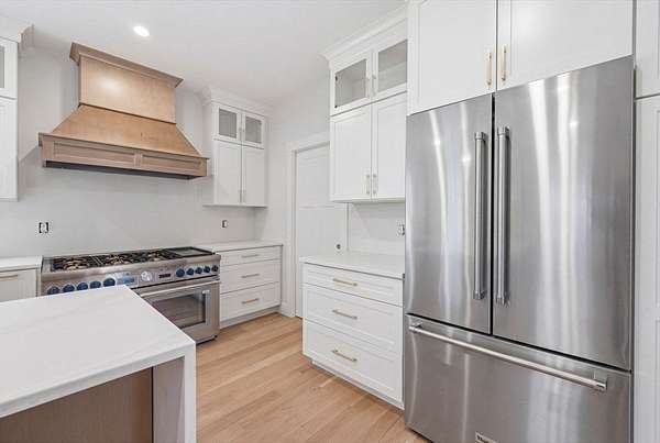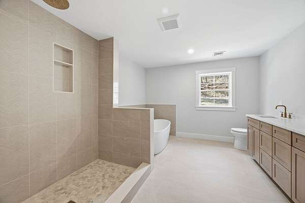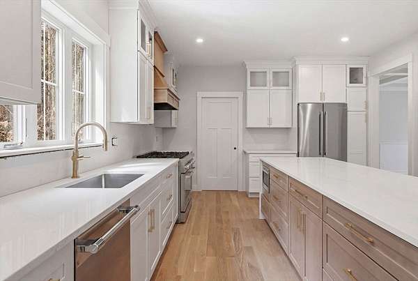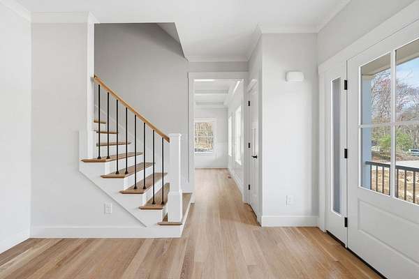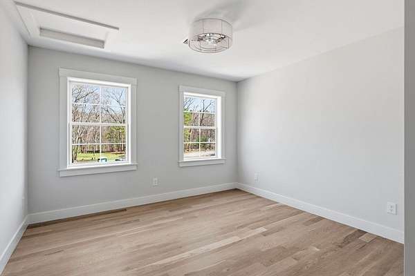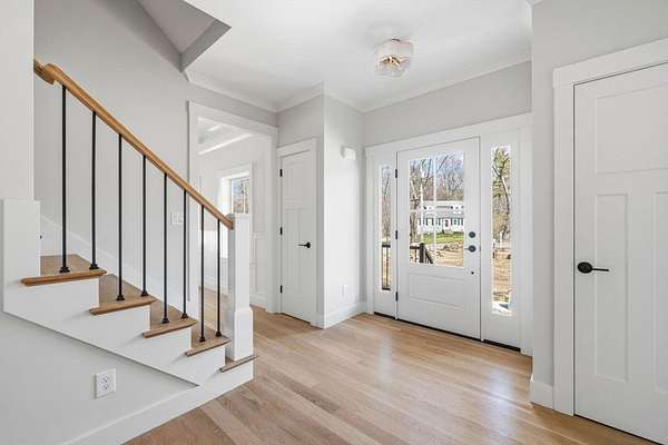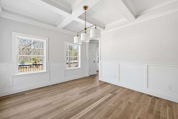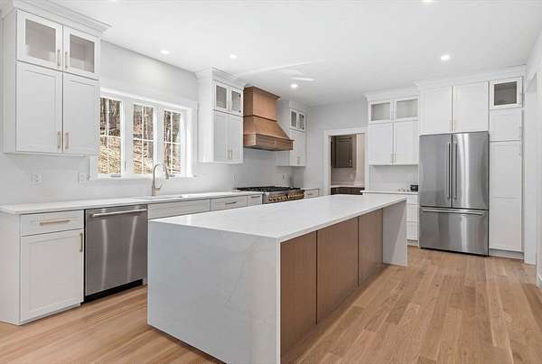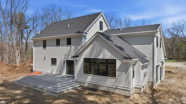 Step into this stunning 5BR, 2.5BA Farmhouse Colonial set on 2.02 acres in desirable Boxford, just a short walk to Spofford Pond Elementary School and Johnson Memorial Park. Offering 3,500+ sq ft, this home features a gourmet kitchen with custom cabinetry by Jackson Kitchen Design, quartz countertops, Thermador appliances, a 48" dual fuel range, oversized island, and butler's pantry. The sun-filled family room boasts a vaulted ceiling and gas fireplace. Main level includes formal dining and private office. The spacious primary suite offers a gas fireplace, walk-in closet, and spa-like bath. Highlights include white oak floors, custom millwork, oversized Marvin windows, and multi-zone Bosch HVAC. Additional features: mudroom with laundry, 2-car garage, farmer's porch, finished 3rd floor with 5th bedroom and bonus space, plus unfinished basement for expansion. Come home and enjoy modern living in a picturesque setting and discover all that the charming town of Boxford has to offer.