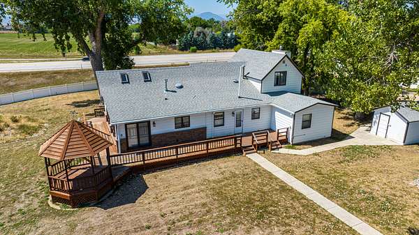 The land itself offers wide-open mountain views, level topography, strong access, and a prime frontage location along the highway. With residential, mixed-use, estate, or investment possibilities, this tract checks every box for the long-term investor or strategic developer. Irrigated ground, mature trees, and classic farmstead improvements create immediate usability and aesthetic appeal.