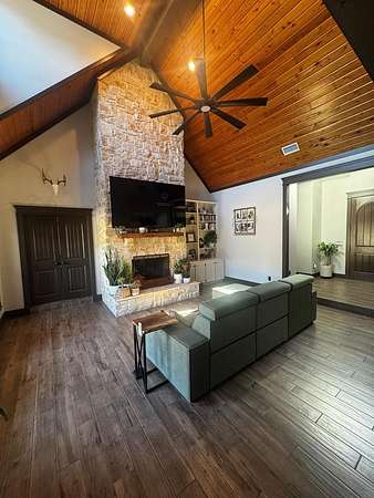 Stunning 3-bedroom, 2-bath home situated on 5.170 gated, picturesque acres in a highly sought-after neighborhood--just minutes from town. This beautifully updated property offers the perfect blend of luxury, comfort, and functionality. Enjoy resort-style living with a sparkling pool featuring new pumps, an expansive outdoor kitchen with built-in fireplace, and a full outdoor bathroom--ideal for entertaining year-round. Recent updates include fresh interior paint, new flooring, new ceiling fans, a new microwave, and a new hot water heater, making this home truly move-in ready. Inside, thoughtful details include a cedar-lined closet and deep laundry room drawers for added storage and convenience. Outside amenities include a sprinkler system, RV hookup, and a large shop with roll-up doors, half bath, and a nice covered back patio. Bonus room above the two-car garage--perfect for a home office, guest space, or game room. A paved driveway leads to a spacious 2-car garage, all secured behind a gated entrance for privacy. The property benefits from a wildlife tax exemption, offering long-term savings. A rare opportunity to own a turnkey home with premium features, acreage, and exceptional proximity to town.