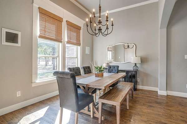 - Built-In Wine Cooler, Cathedral Ceiling(s), Chandelier, Decorative Lighting, Double Vanity, Eat-In Kitchen, Kitchen Island, Open Floorplan, Second Primary Bedroom
