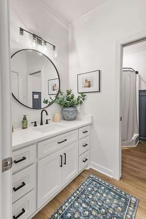 - 3/4 Bathroom, Breakfast Bar, Built-Ins, Ceiling Fan(s), Dryer Connection-Electric, Floored Attic, Kit Counter-Quartz, Smoke Detector(s), Walk-In Closet(s), Walk-In Shower, Washer Connection, Water Heater-Electric