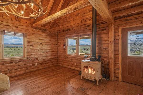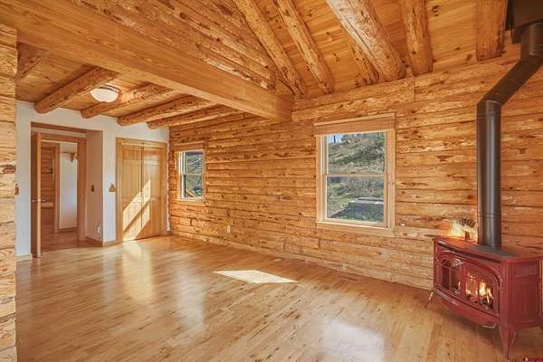 Brent Christians, Galles Properties, C: 970-759-6844, brent@gallesproperties.com, www.GallesProperties.com: Welcome to 106 W Morning Glory Drive where the mountain views are breathtaking! This full log home and over-sized detached additional garage and studio sits on 3+ level acres and borders national forest land. When you walk into the home, the stunning beams will draw your attention to the gorgeous wood ceilings. On the main level, there is a well-equipped kitchen with stainless steel appliances, an island and wood cabinets with antler handles for the Colorado log cabin, rustic feel. The living room, dining area, primary bedroom, and full bath are also on the main level, providing easy living. Upstairs there are 2 additional bedrooms, each with a Murphy bed, allowing you to set up the rooms as an office/guest room. The bathroom has beautiful tile work adding to the uniqueness of this one-of-a-kind log home. The walk-out basement has plenty of storage, a flex-space which would make a great at-home gym area, and leads into the garage. The home has just been stained with a stain that will keep the home looking new for 10 years. Across the paved driveway is the 30' x 30' detached garage, built in 2012 and studio which was built in 2021. The 20' x 15' studio is perfect for your favorite hobbies or an indoor garden area as there are lots of windows providing ample light. There is also an unfinished upstairs area above the detached garage and studio which could easily be turned into a loft apartment. On top of the garage and studio there are 10 solar panels that significantly reduce the home's electric bill (about 1/2 the cost!). An overhang off of the detached garage allows you to park your RV there, complete with a 30 amp outlet. There is a fenced pet area just below the detached garage. Fire mitigation has been completed. You will enjoy countless days and evenings sitting on the covered front porch taking in the incredible mountain views! Come and check out this gorgeous mountain retreat!