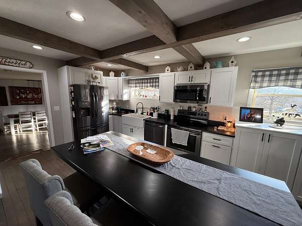 This beautifully updated 3-bedroom, 2-bathroom brick home offers the perfect blend of classic charm and modern convenience. As you step inside, you'll be greeted by refinished flooring throughout the main living area, with new matching floors that enhance the home's warm and inviting feel. The kitchen is a standout, featuring stylish faux wood beams on the ceiling, sleek white cabinets, and a farmhouse-style sink that adds to the rustic charm. The home also includes a partial basement, perfect for extra storage or as a storm shelter. Outside, you'll find a bonus homesite with where once was a mobile home so there will be extra electric and septic system. This leaving plenty of room for future expansion or additional living space. There's also an older cabin-style storage building for even more storage options. Sitting on 3.82 acres just off 25E in Gray, KY, this property offers peace and privacy while being just 5 minutes from the Corbin shopping center and 15 minutes from Barbourville. A rare find with endless possibilities!