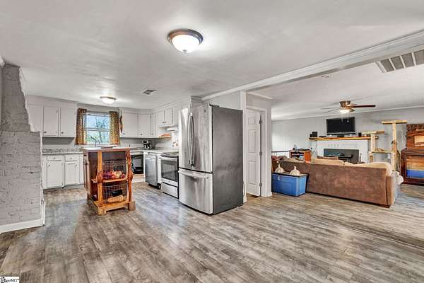 FABULUS FARMHOUSE ON 3.5 ACRES WITH NO/HOA READY FOR YOUR HOBBY FARM OR HOMESTEADING DREAMS!! This 2600+ SF Home is Perfect for those looking to disconnect from chaos and start enjoying peace & quiet (except the sounds of your chickens, goats & turkeys!) This unique Fountain Inn Farmhouse feels far away but is just minutes from convenience of grocery/restaurants/shopping. Start living your dream where you can start your day watching the sunrise and gathering farm fresh eggs! Enjoy lots of space with 4 bedrooms, an open floorplan and flex room for homeschool/office/crafts. Plenty of room for your large or growing family to learn to live from the land and tune out the noise! This home offers 2 outbuildings with lots of storage and the oversized chicken/turkey coops can convey if the buyer wants! This seller also has planted two 2500sf gardens with mesh fencing! The home features replacement windows and a metal roof for piece of mind! If you are looking for a property to get you started on your OFF THE GRID LIFESYLE, come take a look at 106 Weathers Drive! Call Melissa Patton for your tour!