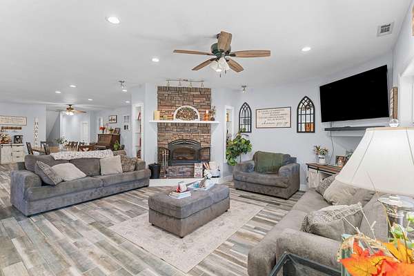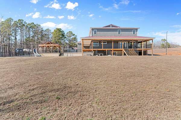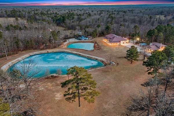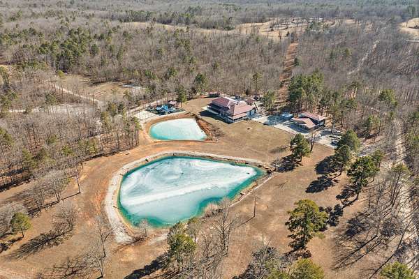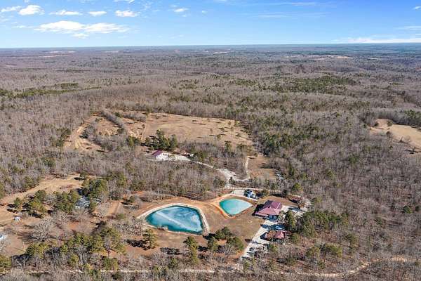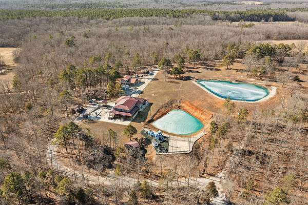 Exceptional multi-family retreat situated on 125 mostly wooded acres, offering unmatched privacy, recreation, and versatility. The nearly 5,000 sq ft main residence features 6 bedrooms and 4 baths, plus a dedicated office and workout room, spacious living areas, and beautiful views of the surrounding countryside. Designed for comfort and entertaining, this home provides room for everyone.The property also includes a well-appointed 4BR/2BA guesthouse, ideal for extended family, guests, or potential rental income.Outdoor enthusiasts will appreciate two large stocked ponds, two established food plots with blinds already in place, and abundant wildlife throughout the acreage. Whether you enjoy fishing, hunting, or simply exploring your own land, this property delivers.Additional improvements include a large 80x40 workshop with living quarters, enclosed basketball court with dusk-to-dawn lights, commercial-grade playground, chicken coop, and greenhouse -- creating the perfect blend of recreation and self-sufficiency.Rare opportunity to own a private estate, recreational paradise, or turnkey multigenerational compound with exceptional amenities and endless possibilities.