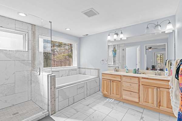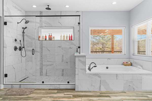 - Granite Counters, High Ceilings, Jetted Tub, Quartz Counters, Satellite Internet, Soaking Tub, Walk-In Closet(s), Walk-In Shower