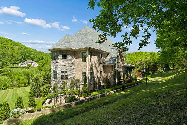 Wishing Trees at Birdsong Hollow is perfect for someone looking to buy an estate and escape to a stunning Tennessee country retreat. It has space, privacy, beautiful scenery, a unique feel, wildlife, and luxury in a quiet spot. This setting really adds to the overall appeal. Natchez Valley is a 215-acre protected green space gated community situated at the Natchez Trace Double Arch Bridge. It comprises only 19 estate-sized homes, each set on generous lots within this protected parkland. This meticulously renovated gently-used French-inspired chateau offers sophisticated, curated spaces designed for effortless, interconnected living. A charming refuge from the fast-paced world, prioritizing comfort and personal expression, allowing you to "lower your shoulders" the moment you walk in. This is a sanctuary with a heart and undeniable majesty, with its dramatic high ceilings and elegant triple-crown molding.The spa-inspired primary bathroom features Italian screeded walls, marble walk-in shower, and wainscoting that creates a luxurious atmosphere inviting you to slow down and embrace valuable 'me time.The kitchen feels like slipping into a soft knit sweater-bold Queen Anne blue cabinetry stands against warm wood floors, and a statement Brazilian black and white granite island, creating a space that is striking and incredibly inviting. A $200K easy-to-maintain mature landscape installation by Oscar de La Renta’s retired British head gardener features a lush courtyard parterre, boxwoods, romantic growing vines, and a dry/wet brook. The common areas are managed by the property owners with an easy-going HOA that functions as a resource for community connection and social gath-erings, rather than just a strict policing body. A new Butterfly MX security gate allows you to visually see & speak w/visitors w/your smartphone before letting them in. Farm animals are allowed. New GAF Roof shingles installed April 20, 2026, with a transferable warranty*