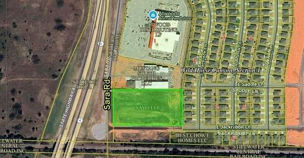 Prime 4 acres of commercial land in Mustang! Located just off Highway 4 on (Sara Rd) Highway 4 Service Rd. The 4 acres are zoned for self-storage units. Engineering work has already been completed for this new self-storage development . The new development already has new residential homes being built and will need self-storage units for the homes in Wild Horse Canyon. What a great location with lots of traffic and great visibility along Sara Rd/ Highway 4 and just south of Highway 152. This will be a great investment opportunity for your buyers developing in the fast growing City of Mustang.