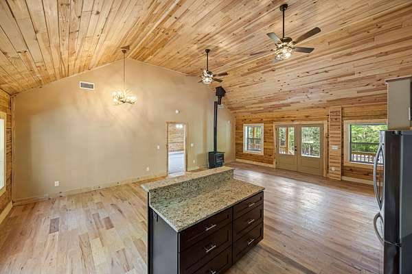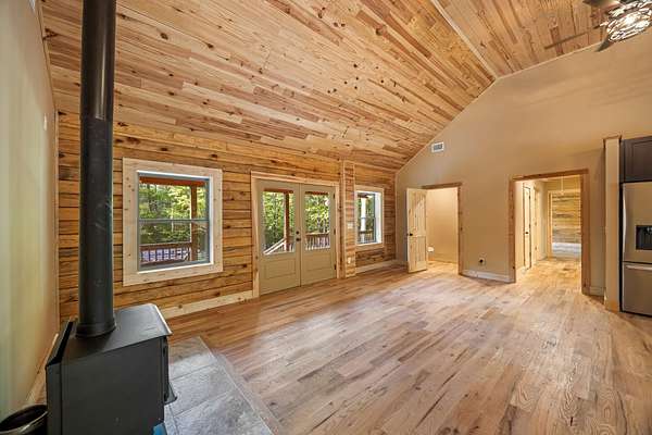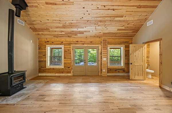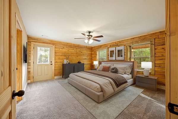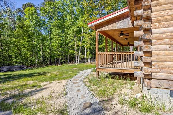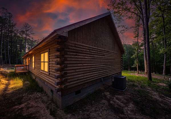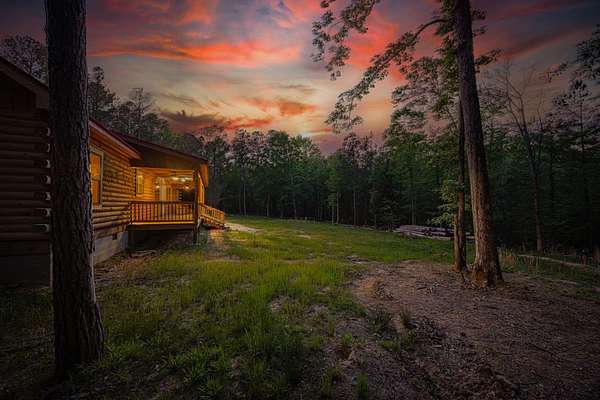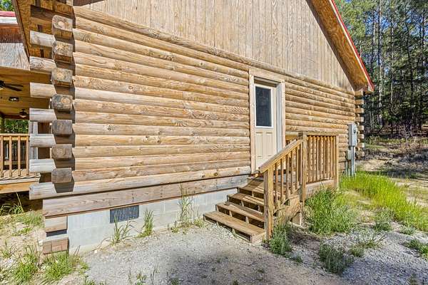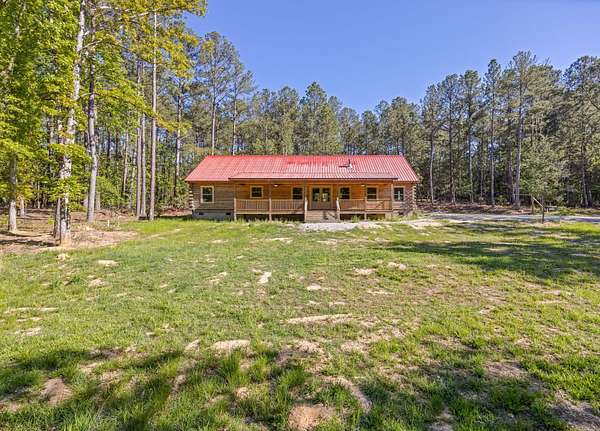 Escape to your own private retreat with this charming log cabin nestled on 6.48 secluded acres. Surrounded by nature and offering road frontage on two roads, this property provides the perfect blend of privacy, flexibility, and peaceful country living, all with no HOA. This ranch-style, one-level home features an open floor plan with 3 bedrooms and 2.5 bathrooms, creating a comfortable and functional living space. The spacious great room showcases a beautiful wood cathedral ceiling and hardwood floors, enhancing the rustic charm and inviting atmosphere. The kitchen is designed for both everyday living and entertaining, complete with a large island and a walk-in pantry for ample storage. The owner's suite offers a relaxing retreat with walk-in closets and a generous en-suite bath featuring a walk-in shower, a free-standing tub, and dual vanities. Step outside to enjoy the serene natural surroundings. Unwind on the rocking chair front porch while taking in the abundance of wildlife, or host family and friends on the rear deck, perfect for grilling and outdoor gatherings. Conveniently located within 3 miles of a boat ramp, this property is ideal for outdoor enthusiasts seeking easy access to water recreation. Experience the tranquility of country living while still being within reach of nearby amenities, including I-20, restaurants, shopping, top-rated schools, shopping, Fort Gordon and Clarks Hill Lake.