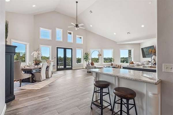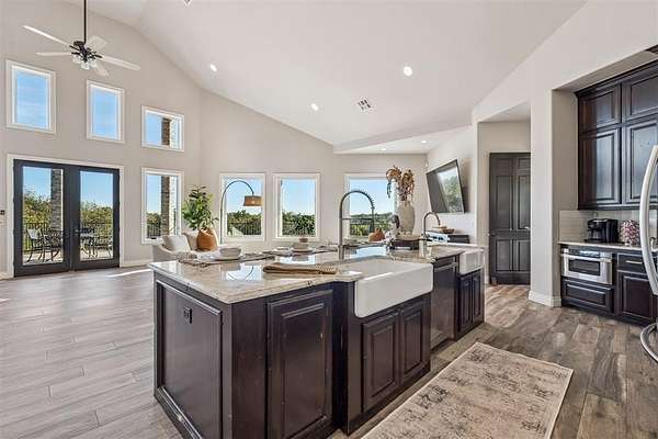 Set atop a serene ridge in the rolling hills of Arcadia, this extraordinary estate blends refined craftmanship with panoramic views and timeless country charm. A gated, tree-lined drive leads to the residence where sophistication meets the warmth of home. The grand entry opens to a spacious great room with floor-to-ceiling windows, soaring ceilings and sweeping Oklahoma vistas. The gourmet kitchen features alder cabinetry, large island with seating for large gatherings, granite countertops, double ovens, a gas range, walk-in pantry, and coffee bar. The adjacent dining area invites gatherings surrounded by endless views. The main-level primary suite offers dual vanities, spacious locking double closets, a jetted soaking tub and custom stone shower. Second master suite with kitchenette, sitting area, and private balcony is ideal for guests or multi-generational living. A private elevator connects to the lower level, which includes a large living area, coffee bar and media-ready storm shelter. Large windows line the back wall with French doors leading to the downstairs patio with views the lake and surrounding countryside. The two additional bedrooms downstairs also feature south facing windows and patio door providing access to the outside patio area. Lage closets as well as Jack and Jill bathroom with separate shower and tub. Outside, a two-story 40x60 shop features a heated/cooled office and two apartments, a one bedroom suite with kitchen and bath plus an upper-level efficiency with full bath. Sitting area outside apartment for enjoying your morning coffee. A stocked pond and firepit patio overlook the peaceful water, perfect for relaxing or entertaining under the stars. Luxury, privacy and natural beauty converge at this Arcadia ridge-top retreat, An exceptional opportunity for a private residence, executive escape, or distinctive investment property. Please provide proof of funds when showing appointment is confirmed. ,