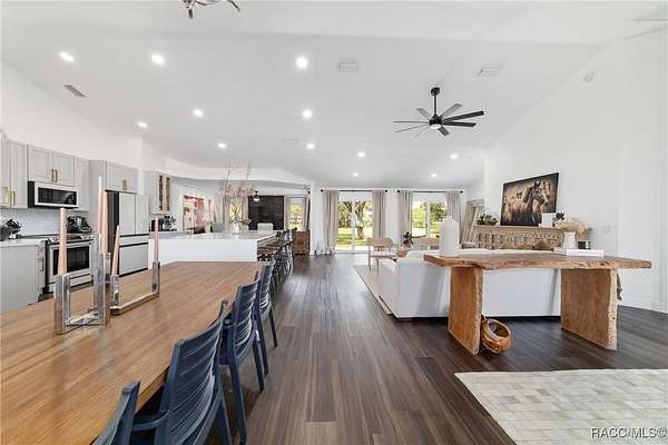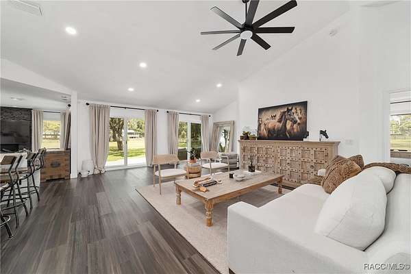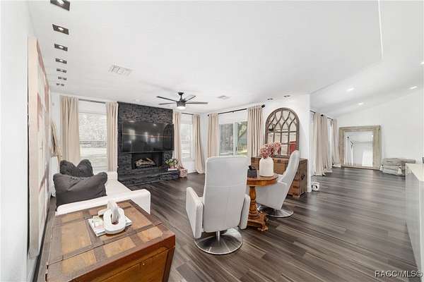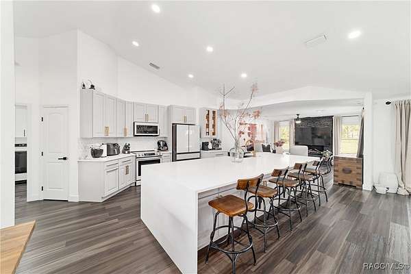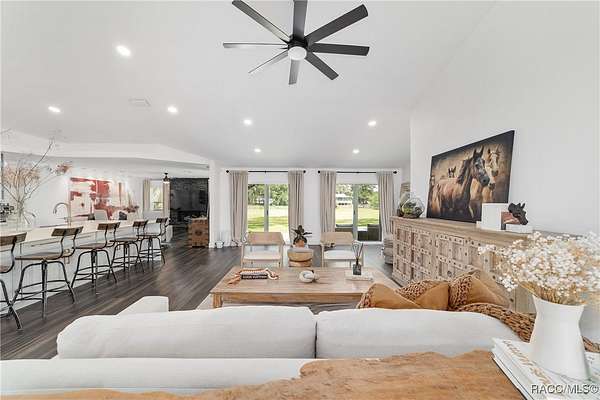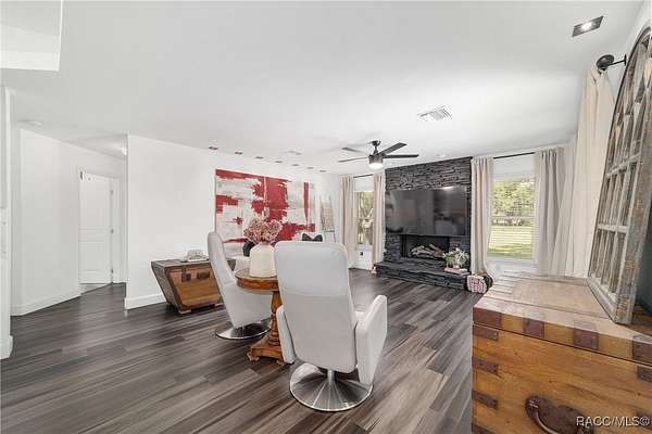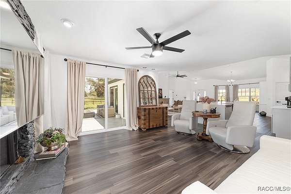 Welcome to your dream home! This beautifully REMODELED custom-built, move-in ready 3-bedroom, 2-bathroom home sits on a sprawling 2.15-acre lot and offers the perfect blend of modern convenience and country charm. Step inside to discover a spacious 2,178sqft of open-concept layout with a desirable split floor plan designed for both comfort and functionality. The living area features cathedral ceilings and a stunning floor-to-ceiling river rock fireplace. The gorgeous kitchen is a chef's delight, boasting new appliances, elegant stone countertops, and ample cabinetry. A dedicated indoor laundry room adds even more convenience. Retreat to the expansive master suite, which includes two walk-in closets and a spa-like en-suite bathroom featuring dual sinks and a luxurious garden tub. Outside, enjoy peaceful mornings or host gatherings on the open rear patio, all while overlooking the four-board fenced yard that offers space, privacy, and potential for pets, gardens, or even a pool. With no HOA and no HOA fees, this home offers the freedom and flexibility you've been looking for. Whether you're entertaining, relaxing, or enjoying the great outdoors, this property truly has it all. Located directly across the street from a local school and just minutes from all amenities, it's ideally situated for both families and commuters.