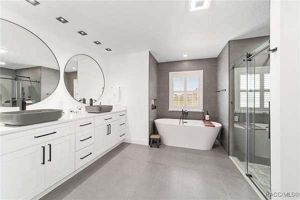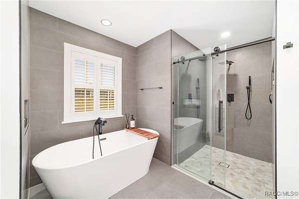 - Bathtub, Cathedral Ceilings, Eat In Kitchen, Fireplace, Main Level Primary, Primary Suite, Separate Shower, Sliding Glass Doors, Tub Shower, Walk In Closets, Window Treatments