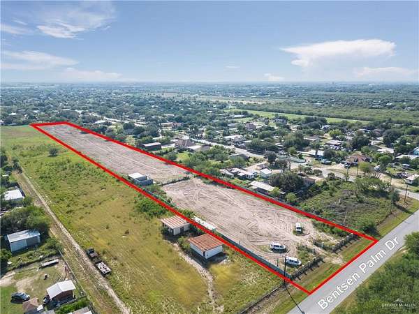 Prime 5-acre tract located on North Bentsen Palm Dr. in Mission. The front 2 acres are enclosed with a gated steel masonry fence, providing security and strong street presence. The remaining 3 acres are secured with wire fencing, offering room for expansion, agricultural use, or additional development. Improvements include a stable with electricity and a partially completed garage that can be converted into a workshop, warehouse, or extra storage. The property also features two 200-gallon septic tanks, making it ready for future growth. Versatile for both commercial use or single-family residential development, this tract combines privacy, space, and a convenient location. A must-see property with endless potential!