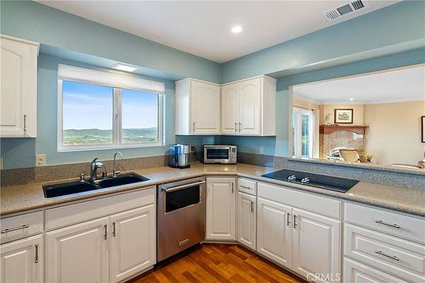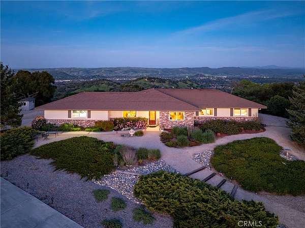 Welcome to 10605 San Marcos Road in Atascadero! Set on 1.9± acres, this single-level 3-bedroom, 2.5-bath home offering at least 2,000± sq ft showcases sweeping easterly and westerly views overlooking Sunken Gardens, Atascadero Lake, downtown Atascadero, and the surrounding hills. Accessed through a gated entry and long driveway, the setting combines scenic beauty with a spacious Central Coast landscape. Inside, large windows and sliding glass doors capture the dramatic views while filling the home with natural light. The living room features a gas fireplace and direct access to the outdoor patios, creating a comfortable space to relax while enjoying the surrounding scenery. Recessed lighting throughout enhances the bright and inviting interior. The family room with French doors provides additional gathering space, while the formal dining room overlooks the landscaped front yard. The kitchen includes a breakfast area and stainless-steel appliance package, offering a functional layout for both daily living and entertaining. The primary suite features a bathroom with a step-in shower, while the hallway guest bathroom offers dual sinks, generous cabinetry, and an oversized mirror. Two additional bedrooms provide flexible space for guests, a home office, or hobby room. Additional amenities include a dedicated indoor laundry room with cabinetry and a wine refrigerator, along with a conveniently located half bath. The home also features a finished two-car garage with epoxy floors and a workbench, providing space for parking, projects, or storage. A whole-house air filtration system adds another thoughtful upgrade. Per seller, a DECRA®? Class A Stone Coated Roof was installed in 2007. Outdoor living is a standout feature with two separate rear patio sitting areas finished with stone pavers, both designed to take in the expansive lake, city, and hillside views. The grounds are studded with mature oak trees and feature rock and DG landscaping along with striking natural stone accents, including large boulders and moss boulders throughout the property. Additional improvements include a fully fenced parcel, storage shed with double-door entry, and a Generac propane backup generator with WiFi monitoring. This property offers spacious single-level living with remarkable Central Coast views just up the hill from downtown Atascadero!