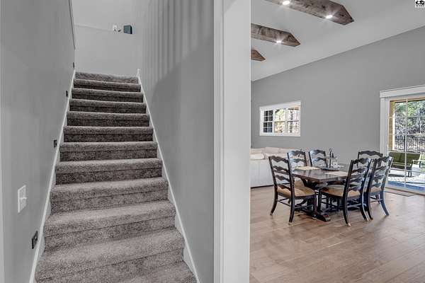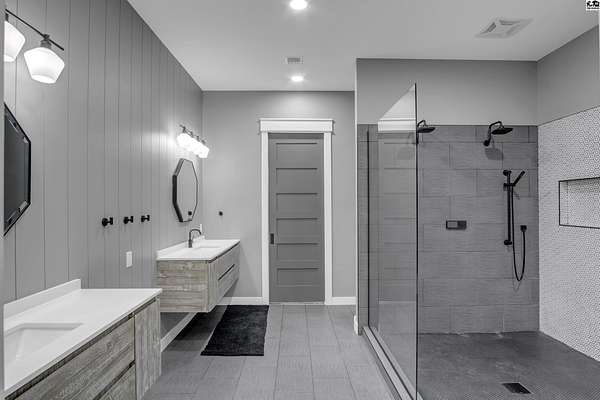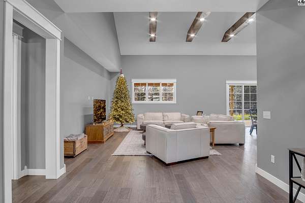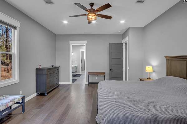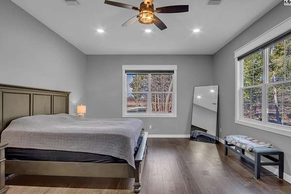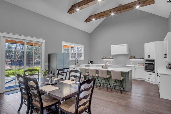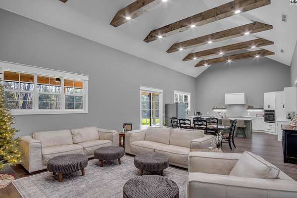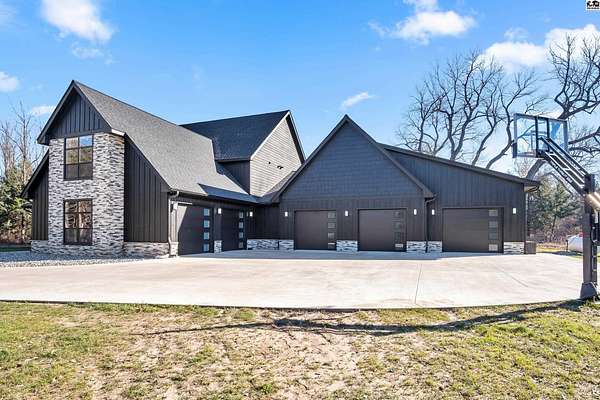 This stunning 2024 contemporary build is a blend of luxury, efficiency, and functionality. The home's 3700 sq ft has 4 bedrooms, 2.5 bathrooms, and premium upgrades throughout. As you walk in the front door or the back patio doors you enter the expansive great room with soaring 20 foot ceilings, an abundance of room to entertain. Plenty of space for a large dining table. Open into the modern kitchen, featuring, built in appliances, plenty of cabinets, large island, and granite counters. The walk-in pantry also serves as a storm shelter. A half bath and large laundry room are close to the garage for convenience. Also, on the main floor there is an oversized master bedroom, a large walk-in closet, and a must see luxury master bath, featuring a smart shower. On the second floor there are 3 additional bedrooms, one bath and a bonus room, plus amazing storage area. You will find a back patio, 44 x 14, on the east side, what a great spot to cook or relax overseeing the peaceful pond and frequently visiting deer approaching from the surrounding wooded area. The garage is a rare find, having smart garage doors and security lighting, it is an impressive 3200 sq. ft. offering incredible versatility, dedicated office space, enclosed climate controlled shop area for your hobbies. A full bath and dog wash station already framed and plumbed just waiting to be completed. The home has wood siding and class 4 high impact roofing, underground sprinklers, 2 of the HVAC are geothermal.