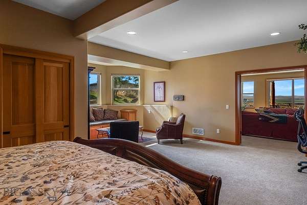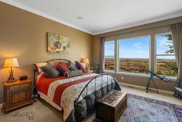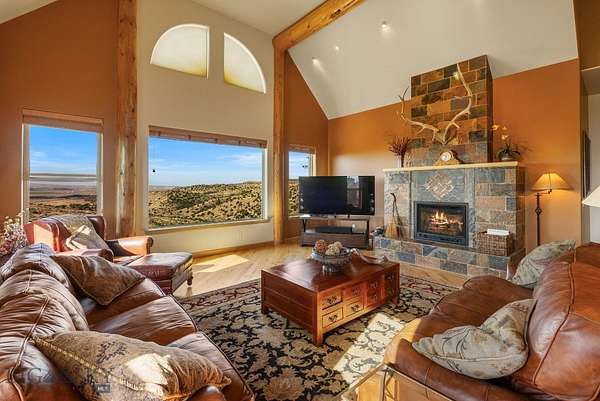 Big Sky country on display right out your door! This lovingly cared for and well-maintained Gallatin River Ranch home is the perfect blend of privacy, comfort, and Montana beauty. Wake up every day to sweeping views of the Gallatin River and Tobacco Root Mountains, with abundant wildlife and endless skies filling your viewshed. Elk, mule deer, and others also call this piece of the west home. Watch as Mother Nature rolls storms across the valley below and paints the river bottom from green in the spring to yellow and burnt orange in the fall. Set on a little over 19 acres, this parcel offers end of the road privacy. The home feels bright and welcoming with its open floor plan, vaulted ceilings, and large windows. The kitchen and great room are at the heart of this home, accommodating gatherings of any size. The main floor master is warm and inviting, with a well-appointed bath and private access to the outdoor hot tub and sweeping westerly sunset views. The upper level offers options to fit your lifestyle as the fourth bedroom with full bath or a generous-sized home office. The walkout lower level offers two more bedrooms, a family room with wet bar perfect for gathering to watch the big game, and ample storage. The 8 foot sliders lead out to the patio adorned with a pergola and tranquil waterfall. This is one of several outdoor spaces allowing you to enjoy your surroundings no matter the weather. Other impressive features include two gas fireplaces, exposed timbers, central air, and more. The 2024 built heated and air-conditioned shop with epoxy floor gives you room for projects, storage, and hobbies with two deep garage bays allowing for RV storage plus a flex space for a home office or gym. Gallatin River Ranch offers a multitude of trails and roads to hike or bike, 2.5 miles of river access including a private boat landing, and a sense of community that makes you feel connected while still having our own quiet retreat. Set below, the charming town of Manhattan is just a short drive away and offers restaurants, a brewery, market, plus other amenities. The airport and all Bozeman has to offer is a short jaunt down the road. Come home today to 1061 Lookabout Lane!