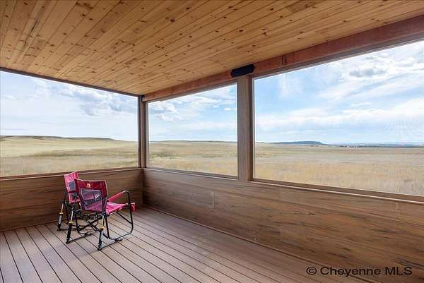 Whether you're looking for a quiet getaway or a base for hunting and adventure, this newly constructed cabin offers breathtaking views, modern comforts, and unmatched access to the outdoors. Just 3 miles from the lake and minutes from Glendo State Park's Sandy Beach, boat ramp, and hiking trails, this property is perfectly situated for year-round recreation. Set on a corner of the parcel to maximize both privacy and views, the cabin features large front windows and a spacious screened-in porch, perfectly positioned to capture the surrounding beauty. With electrical and water lines buried underground, nothing obstructs your view of the sweeping landscape. The land borders a private ranch known for guided trophy hunts, with frequent sightings of impressive game. It's also located near a pheasant management area and sits along a natural flyway for migratory birds--ideal for birdwatchers and sportsmen. Additional highlights include several water hydrants between the home and the well, a large cistern supplying ample water for daily and recreational use. The property also features a septic system with an RV cleanout, providing extra convenience for visitors, extended stays, or off-grid living.