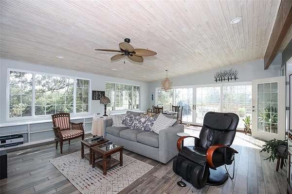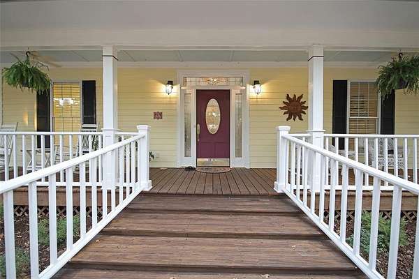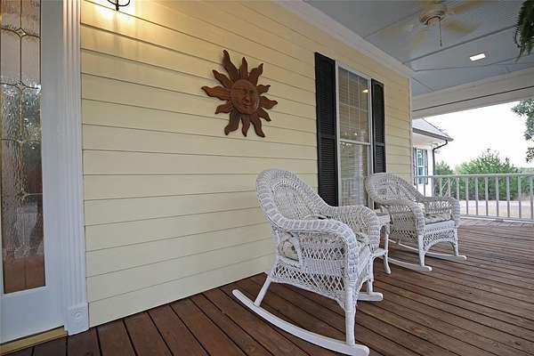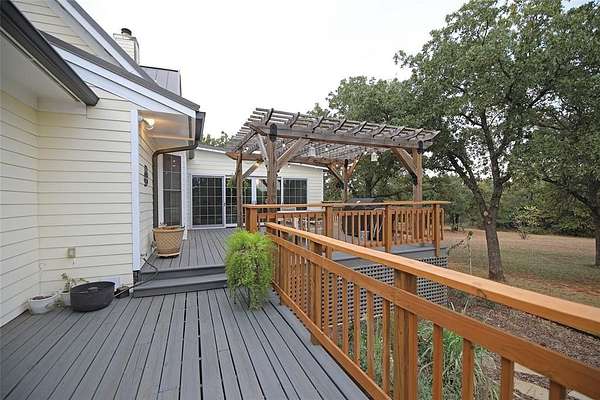 Tucked on the East side of Lake Arcadia, your secluded and peaceful life awaits. 4 bedrooms and 3.5 bathrooms with 3279 sq ft of living space and an abundance of outdoor living space awaits you. Gated access leads you to the home which is secluded behind a curtain of oak trees on just over 6 acres of land that is teaming with wild life. There isn't a part of the home that is at a loss of space with features like true geothermal heating and cooling and a fireplace you'll always be comfortable regardless of season. Storage is not in short supply from numerous cabinets to a large attached 2 car garage. Your outdoor living spaces boast multilevel decks, pergolas and off dwelling areas to entertain or enjoy your coffee as you watch deer graze. (A mom and her twin babies walked 15 feet away from me after a photo shoot!)