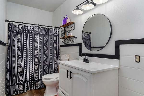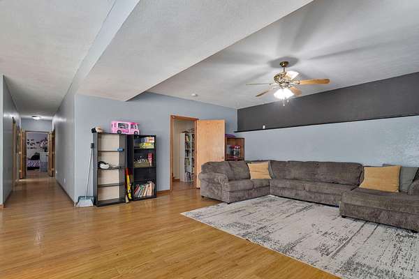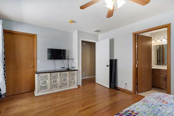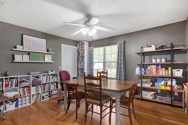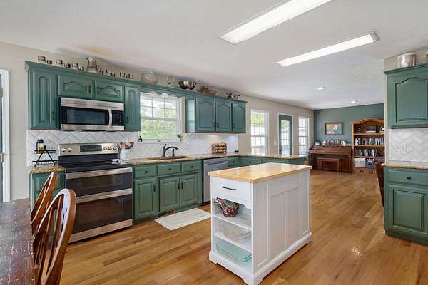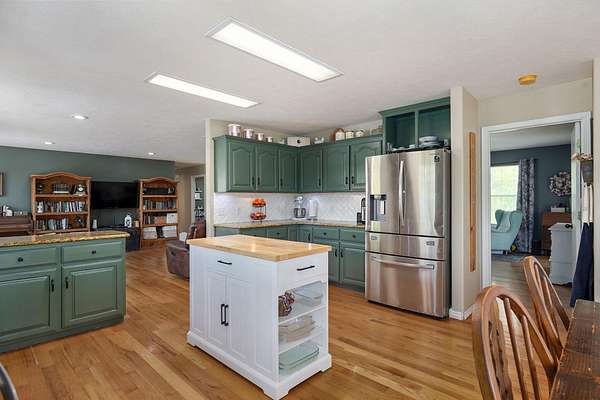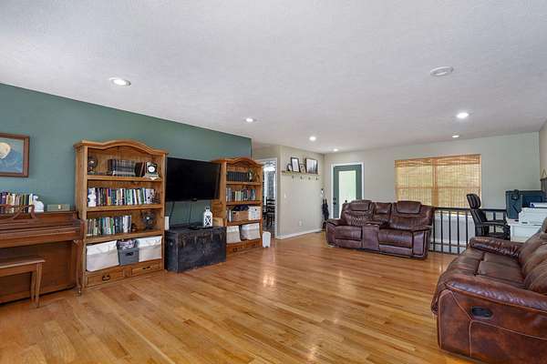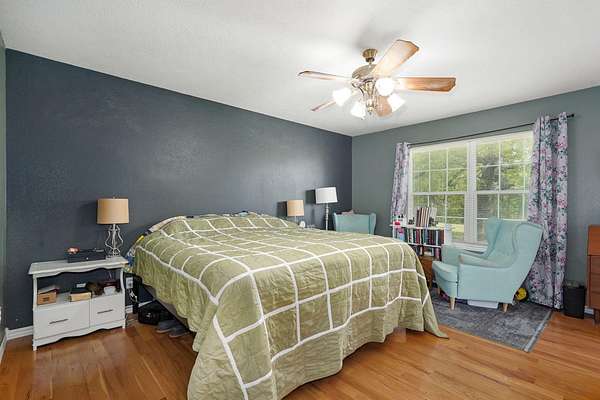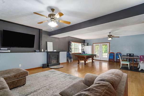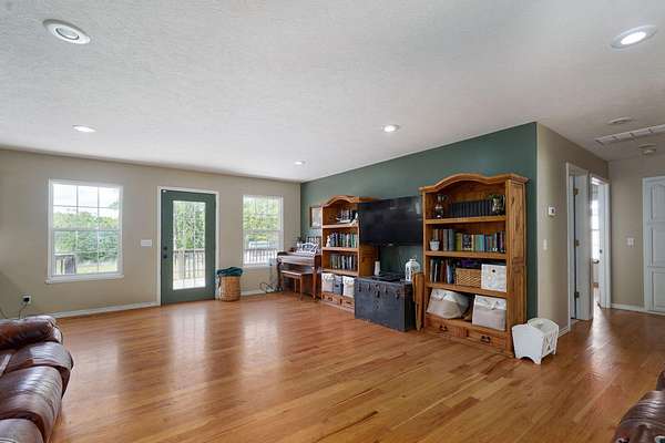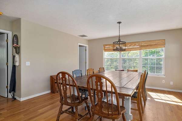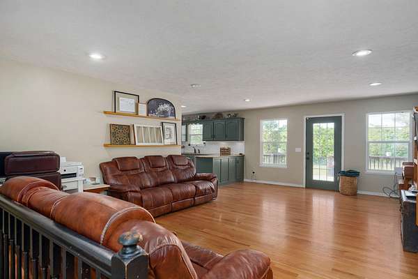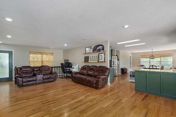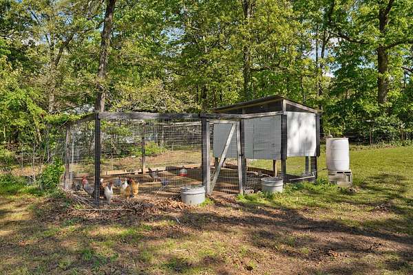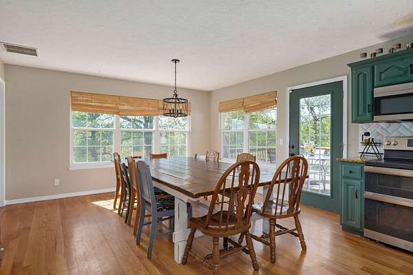Location, setting, and space all come together on this exceptional 5-acre property. Perched on a hill with a park-like setting and mature oak trees, this home offers both privacy and convenience just minutes from town.The main level features a spacious open floor plan with beautiful hardwood flooring throughout most of the living areas. The kitchen offers abundant cabinet space, granite countertops, double oven and a generous dining area--ideal for everyday living and entertaining. Upstairs includes three bedrooms, two of which are large primary suites.The finished walkout basement offers impressive 10-foot ceilings, a second living area, and multiple additional rooms with closets that can serve as bedrooms, office space, hobby rooms, or storage (non-conforming due to lack of windows). One room also includes a concrete storm shelter. You'll find extensive storage throughout, including a large walk-in storage/closet space.Recent updates include a new AC unit (2025) and there is also a commercial-grade water heater.Outdoor features include a full-length deck perfect for entertaining, a covered patio, fire pit area, and a patio bar that stays. The property offers abundant wildlife, including deer and turkey, adding to the peaceful country setting.Additional highlights include a large detached garage/workshop with space for up to 5 vehicles, plus an additional outbuilding for equipment or extra storage.Conveniently located just minutes from town with easy access to Springfield, Branson, and Stockton Lake.
