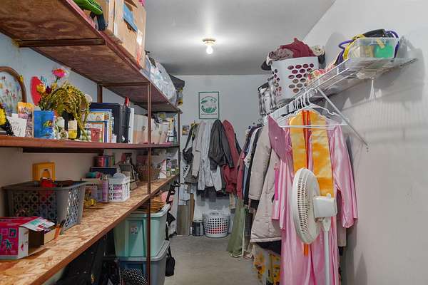 - Concrete, Exterior Entry, Finished, Full, Interior Entry, Storage Space, Walk-Out Access