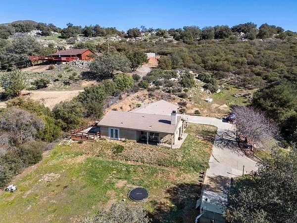 Set in the heart of Descanso, this gated single-story home offers space, privacy, and the relaxed pace that defines country living in San Diego County. Situated on approximately 2.4 acres with mountain views, the property blends open land with a peaceful rural setting just beyond the city. The 1,879 SqFt home features 3 bedrooms with an optional 4th, high ceilings in the living room, fresh interior paint, and a fireplace anchoring the main living space. The family room offers a subtle indoor-outdoor flow, creating an ideal setting for outdoor dining, entertaining, and enjoying the surrounding landscape. The fenced property includes a shed, chicken coop, private oak grove, and striking boulder formations, along with usable space that offers flexibility for a true country lifestyle. Additional highlights include owned propane, a private well house, and large well storage, supporting a more self-sufficient way of living. A rare combination of country setting with everyday convenience, the property features a fully paved driveway and is located less than 8 minutes from freeway access. Minutes from Descanso Junction Restaurant, nearby hiking trails, and a short drive to Julian and Pine Valley, this home offers privacy, open space, and the strong sense of community Descanso is known for.