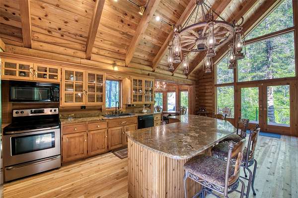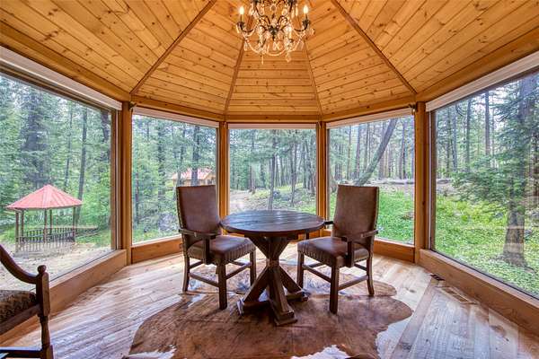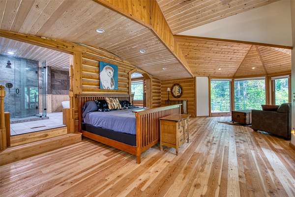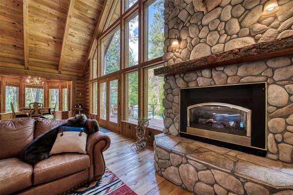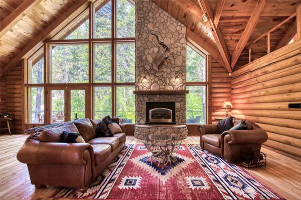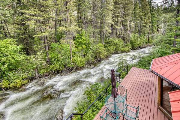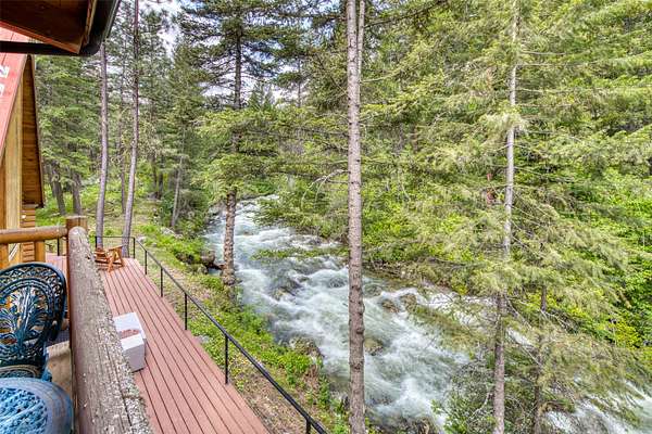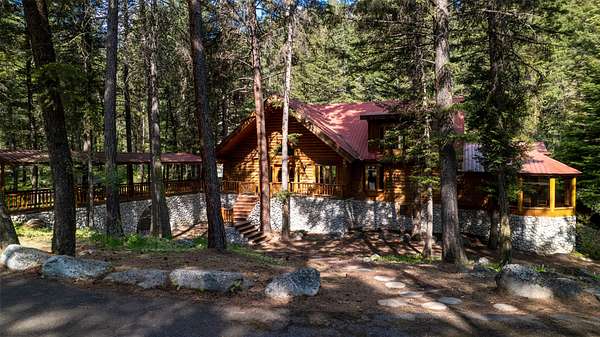 New price! This exceptional Bear Creek hideaway represents a rare opportunity to secure a legacy Montana property at a fraction of what it would cost to recreate today. With handcrafted log construction increasingly difficult to replicate, this offering is as much an investment in scarcity as it is in lifestyle. Large creek right out the door! Set along the rushing waters of Bear Creek on nearly six acres, the residence spans over 6,000 square feet of refined mountain living. Soaring vaulted ceilings, massive timber beams, and a dramatic staircase built around a natural character tree define the home's architectural significance, while expansive windows and two fireplaces create warmth, light, and year-round comfort. The main floor primary suite offers convenience and privacy, while the open kitchen and gathering spaces are designed for connection after days spent outdoors. Step beyond the doors to experience Montana at its finest-fish for trout directly from your property, or ride your ATV or OHV from the garage to nearby trailheads accessing thousands of acres of Forest Service land. A fully renovated one-bedroom creek side cabin introduces exceptional flexibility and income potential. With no covenants or restrictions, owners may operate short-term or vacation rentals, creating a unique blend of personal retreat and revenue opportunity. The detached three-car garage accommodates vehicles and recreational equipment with ease, supporting an active, all-season lifestyle. Offered fully furnished, the property is truly turnkey. Despite its peaceful seclusion, the home remains within convenient reach of Missoula International Airport and the amenities of the Bitterroot Valley-offering both accessibility and escape. For those seeking a private waterfront retreat with luxury, recreation, and income potential, this is a moment to act. Immediate occupancy. No restrictions for short term rental use. Bring your fly rod and enjoy for a lifetime with friends and family. Be sure to put this home on the list of properties that offer real water frontage! Ask the agent for list of recent upgrades to the property.