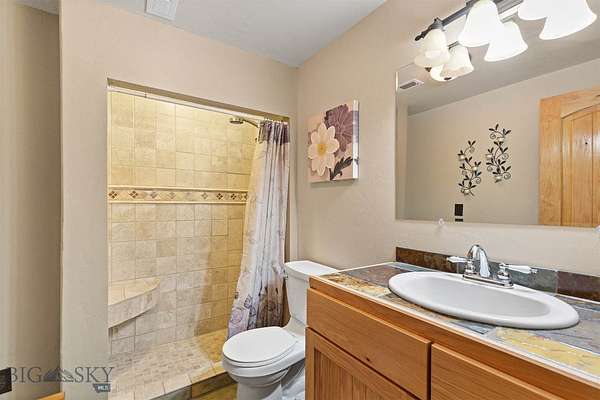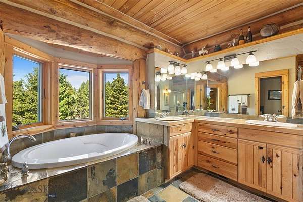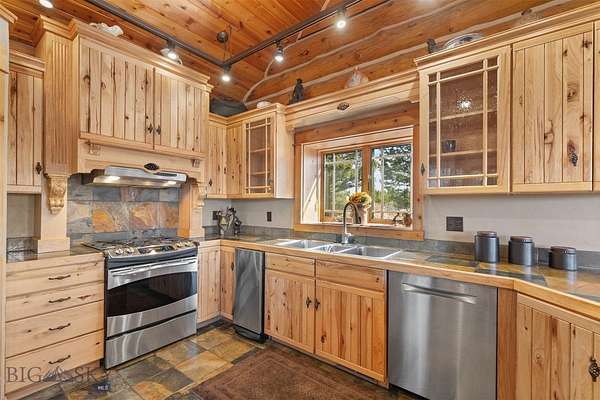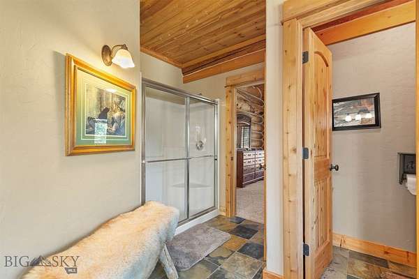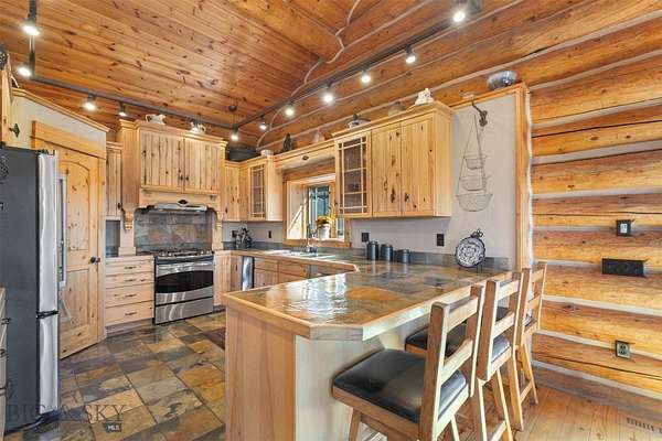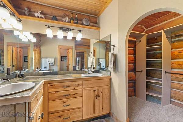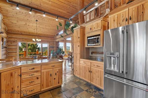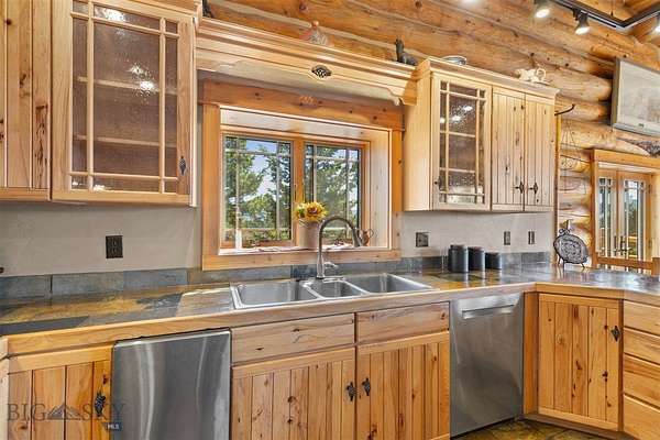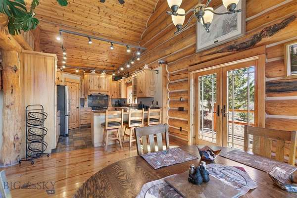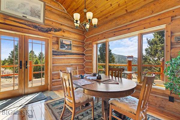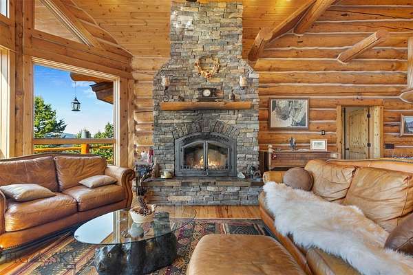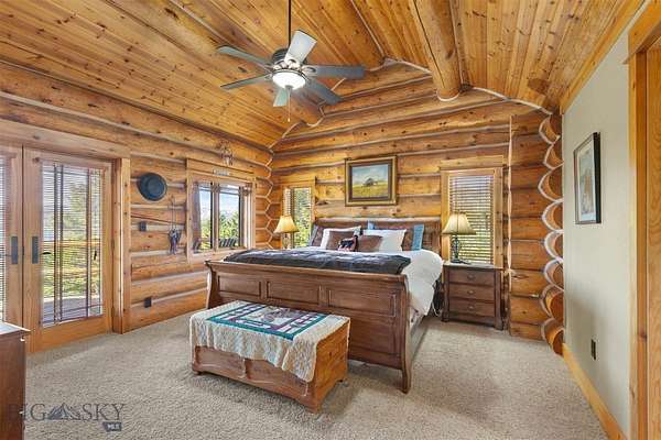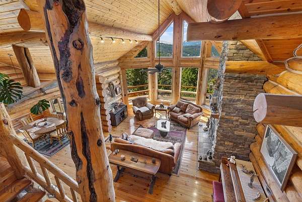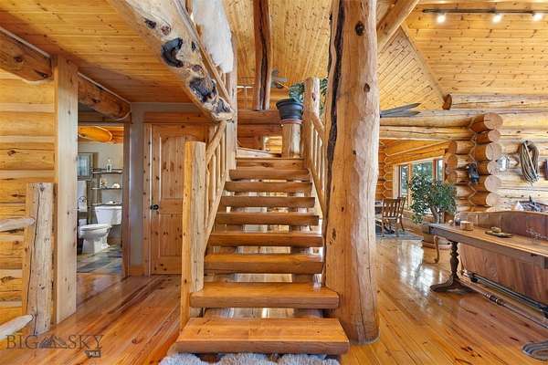 Come home to your Montana Dream log home on over 21 acres in the mountains, where rustic charm meets custom comfort only minutes from Historic Downtown Bozeman. Surrounded by native pines and offering breathtaking mountain views in every direction, this acreage is the epitome of Montana mountain living. The heart of the home centers around the dramatic log framed great room with soaring timber ceilings, a floor to ceiling stacked stone fireplace, and walls of windows that frame the majestic mountain vistas. Warm hardwood floors and custom log accents create a cozy and inviting atmosphere, while the large windows allow the light to fill every room and invites the outdoors in! The gourmet kitchen focus your attention out the windows to the secluded timber views and features wood cabinetry, granite countertops, and stainless appliances - perfect for everything from morning sunlit coffee, to light filled lunches, and intimate dinner parties. The primary bedroom suite is conveniently located on the main level, offering a peaceful retreat with log walls, forest views, and gorgeous vaulted ceilings. Upstairs you'll find a charming loft space accessible via a rustic log staircase with natural wood that adds to the authentic mountain character. The basement level provides excellent additional living space with two finished bedrooms and a full bath, plus an unfinished bedroom/office and open living area that offers endless possibilities for future customization . The expansive wraparound deck is where this place really comes to life, with multiple outdoor spaces that take full advantage of the spectacular mountain views. Adding to the outdoor appeal is a private stocked trout pond on this secluded property, perfect for enjoying this peaceful outdoor mountain environment. All of this is nestled into a private end of the road wooded lot that feels like your own personal forest retreat. You'll have complete privacy while still being convenient to Bozeman, Livingston, and surrounding recreation, creating the perfect balance of mountain retreat and easy accessibility. This isn't just a home, it's your own personal slice of the famous "Big Sky" lifestyle, where days feels like vacations and the views continually take your breath away.
