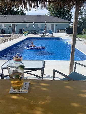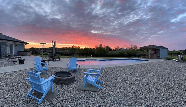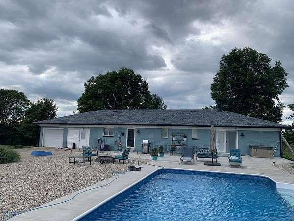 Stunning brick range home on 5 Fenced Acres with an in-ground pool and hot tub! Beautiful landscaping with mature trees, stunning sunsets along with half the property is fenced separately with a automatic waterer and surrounded by farms makes this property a must have! Spacious 4 bedrooms, 2 full baths, 1 car garage, wood laminate flooring, stainless kitchen appliances, and partial concrete basement for storage or storm shelter. This property also has a 24'x32' detached 2 car garage , 2 carports (enclosed carport is behind garage) Huge gravel pad in back yard to park! Back yard oasis with a Fire pit, Triangle Sun Shade system over pool and Tiki bar with shed for pool storage or changing. previous owners completed perk test and received approval for additional living space on property. Home layout is set up nicely for generational living with two bedrooms and a full bath being on each end of the home. The possibilities are endless call listing agent to schedule your viewing now.