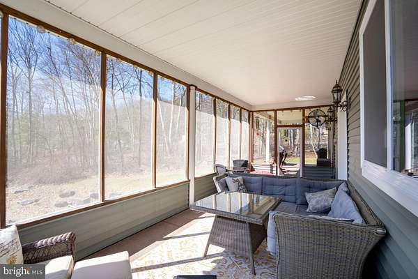 Stretch your dollar where quality is affordable, and the taxes are low! Drive only 25 minutes to State College and enjoy all the perks of a university town, or go 20 minutes in a different direction and embrace Raystown Lake. Retreat Lifestyle Awaits! An additional adjoining two acres are available if more land is desired. If you are looking for privacy, luxury, and a full display of nature, look no further! Relax on your screened-in porch overlooking our own pond, gardens, and creek, with the trees as the backdrop. This property checks all the boxes. Enjoy the pitch-perfect bullfrogs and peepers performing nature's orchestra every summer evening. Create memories from sunup to sundown on the massive back porch, where all can comfortably gather. All aspects of the property are incredibly well planned, both inside and out. This classic Cape Cod offers true one-floor living. The main floor features an open-concept plan that is perfect for daily communication and entertainment. Life is easy and organized, as you transition between the house and the garage through the large mudroom/laundry/pantry space. The gourmet kitchen, with a massive granite island, serves as a natural gathering spot and offers endless counter space for meal prep. The timeless kitchen design with pull-out drawers, a big farm sink, beautiful cabinets/hardware, and backsplash makes spending time in the kitchen delightful. The great room features a cozy pellet-burning stove, a large window surrounded by built-in bookshelves, stunning hardwood floors, wrought iron, and stone finishes that define this timeless Craftsman-style home. The owners' ensuite is well-appointed with direct access to the back porch. The second floor offers skylights, a full compartmentalized bath, an office, and walk-in storage. The lower-level walk-out basement offers a massive flex space, currently used as a well-appointed home gym, equipped with a sauna and rough-in for a future bath. Be creative with a huge room that is currently a step up as a woodworker's dream! If woodworking is your thing or perhaps a future hobby, look no further! Equipment is negotiable. Bring on the projects with large workbenches and ample tool storage. This property offers a lifestyle hard to beat and a rare find.