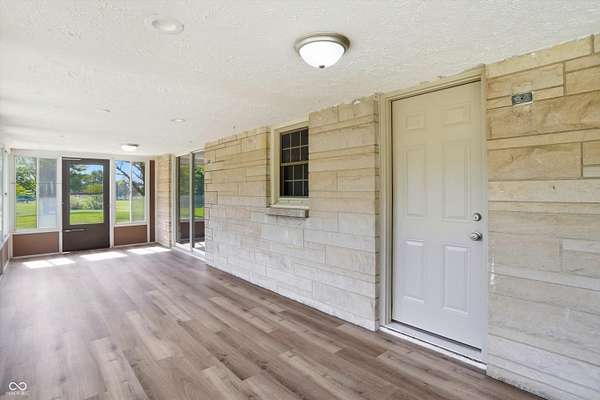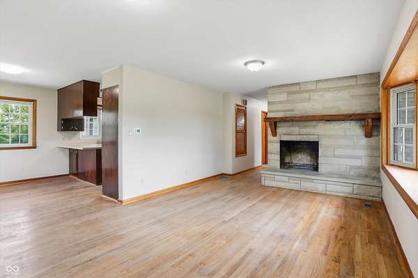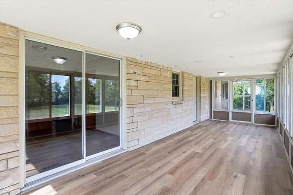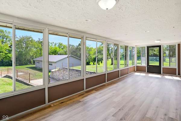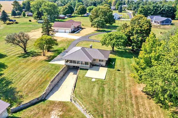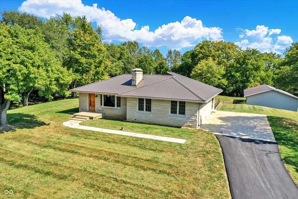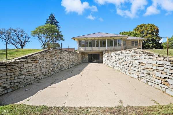 7.82 Acre Oasis! If you love the outdoors, this is your slice of paradise! Approach the cozy Bedford stone home sitting on a hill at the end of a brand new private shared driveway. Pull up right next to the sunroom door or follow the drive around to your safe haven, a stunning backyard, boasting of an oversized 3 car det gar and massive entrance to the walkout basement! 3bd/1bth and laundry on the main level, with endless possibilities in the full unfinished basement! This home offers two fireplaces and an abundance of original hardwood floors, newer metal roof, HVAC, and vinyl windows! The garage/shop is every man's dream with concrete floors, new windows, fresh paint, and electric! Sip your morning coffee or enjoy evening cocktails from the massive sunroom overlooking perhaps the most private and serene backyard on this side of the Mississippi!