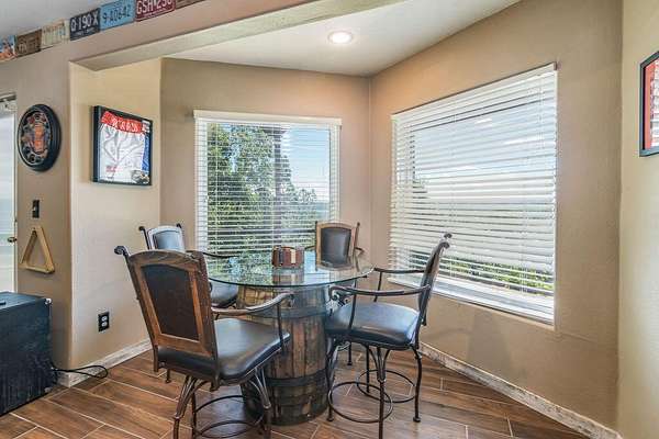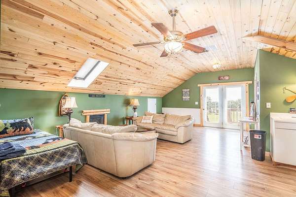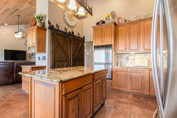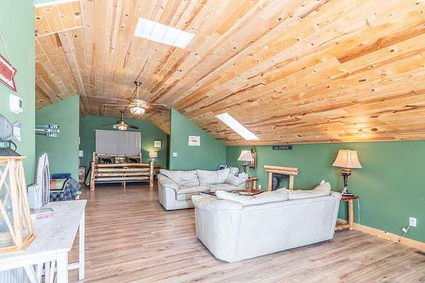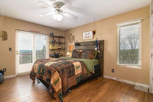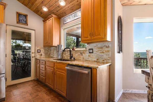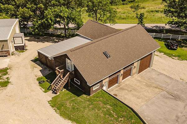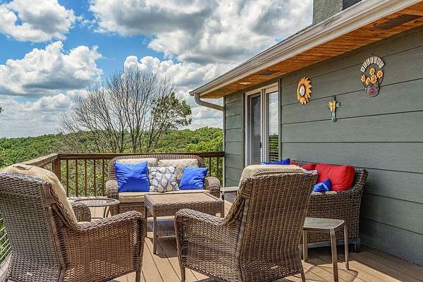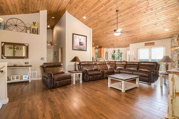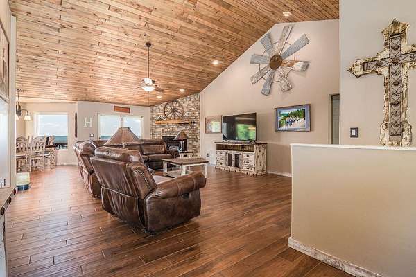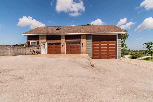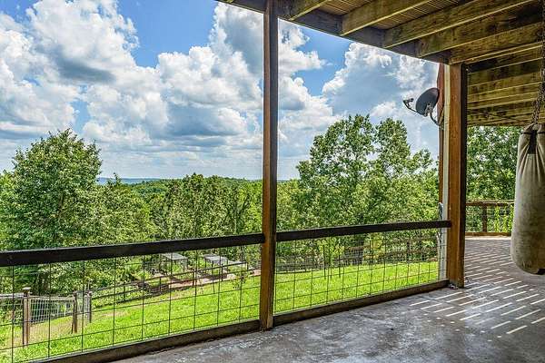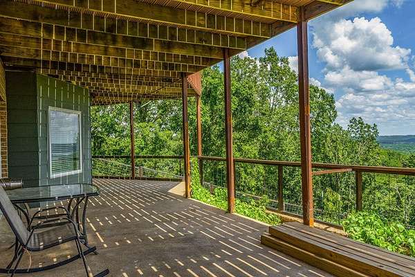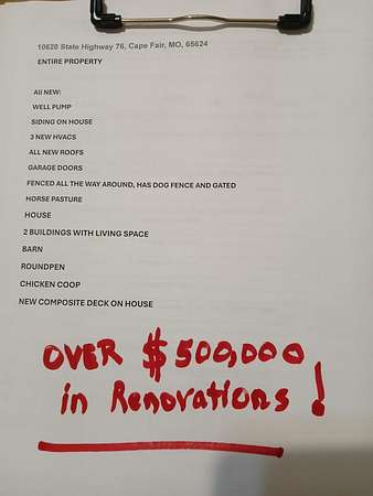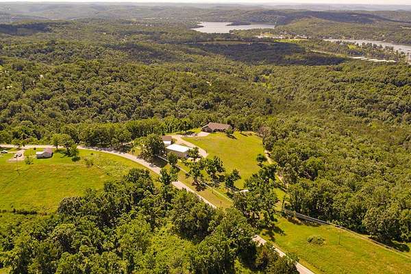 Gorgeous Table Rock View from this beautifully renovated home that is only about 5 minutes to the boat launch! Gated, secluded, but only about 12 minutes from Branson West. The home has a brand-new 11'9' by 6' green house with a sink, 8 4' by 8' raised garden beds, 18'' deep, and fruit trees. peach, apple, pear, nectarines... The lower level has 2 bedrooms, a bonus room, a storage cellar, a large kitchenette, and extra living space. This home comes with 2 other buildings and a 4-stall horse barn. Read on for their descriptions. The home has a new siding and a new composite deck. where the owners can sit, eat, and enjoy the magnificent view. The home and both buildings all have new roofs and new HVACs as well as beautiful new garage doors! The well pump is new! This unique property has a large event center (about 2537 square feet) with a very well-equipped commercial kitchen, a bandstand, dining area, and game room area as well as a projector and a large screen. A wonderful collection of antiques enhances the atmosphere, and three large garage doors can be opened for open-air activities! The event center does have a bathroom with a shower. This building was used for a car collection by the previous owner and could be converted back to a garage if desired. The other building is a cabin with about 1462 square feet of living space with an attached garage that is about 46' 9'' by 19' 5' with a height of about 14 to 16'. The new garage door is 14' high. There is a 30-amp RV hook-up off of the driveway behind this building. There is a lean to shed attached to the building for mowers, etc. The lower level of the cabin has 1 king size bed, 3 sets of bunkbeds, a washer, dryer, mini fridge, a microwave, and a sink. It includes a recliner sofa, a bathroom with a shower, and 2 paddle fans. The upper level has one king bed that could be 2 twins, 6 twin beds, 2 sofas, an electric fireplace, a medium size fridge, a sink, and a microwave. Please see added info in photos!