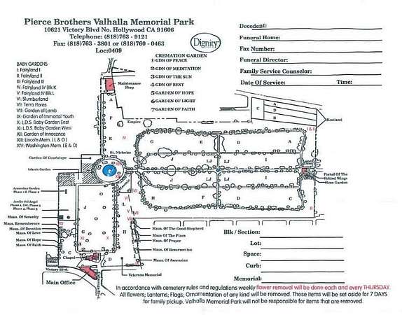 A rare opportunity to secure a final resting place in the highly sought-after Pierce Brothers Valhalla Memorial Park, one of North Hollywood’s most historic and beautifully maintained cemeteries. This single burial plot offers a serene, dignified setting surrounded by mature trees, manicured grounds, and the timeless character that has made Valhalla a cherished choice for generations.
