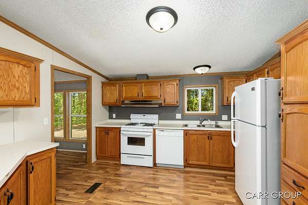 Looking for some land with privacy with some woods then look no further as here she is. Awesome setting on this sprawling ranch sitting off the road with some land with mature woods. Home features 3 bedrooms and 2.5 baths. 2 living rooms and a large entry mudroom for all your supplies. Huge kitchen with plenty of counterspace and lots of cabinets for storage. Large primary bedroom with double closets and its own private ensuite full bath with huge garden tub and separate shower. Rear yard with open space and storage shed to the rear. Centrally located between Grand Haven/Spring Lake and Allendale/Zeeland and Coopersville this is an ideal location. Many updated items of appliances and newer roof will give you peace of mind.