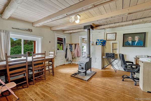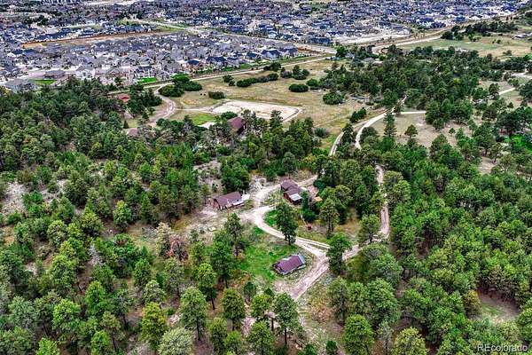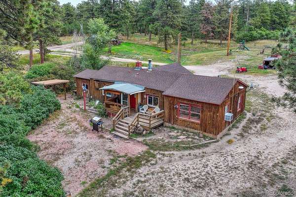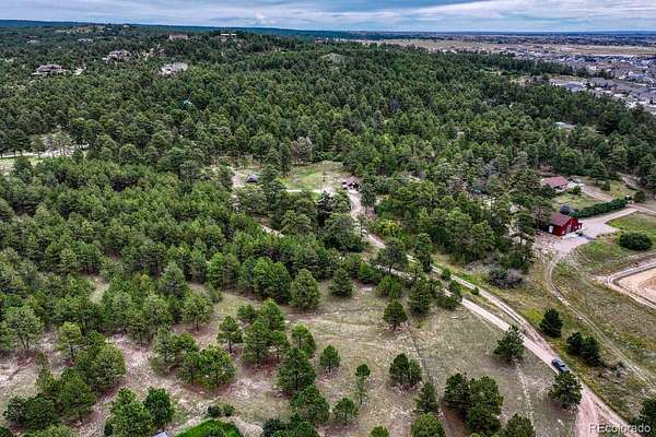 Phenomenal SW Black Forest location with almost 9 acres, gorgeous Pikes Peak views and mature Ponderosa Pines and Scrub Oak only mere minutes from the amenities of Powers and Northgate. This is the best of both worlds - living on peaceful, beautiful acreage but located on the edge of Black Forest with all of the best amenities within minutes of your home. Flag lot with amazing off-road privacy and beautiful homes surrounding. Award winning School District 20 within walking distance of Pine Creek High School. No HOA. Ability to build additional home with many terrific home sites with walk-out basement potential, barns and outbuildings. Charming cabin built in 1934 with over 1,200 square feet on one level, 2 bedrooms, bath and a large living room with log beamed ceilings. Detached workshop/1 car garage. Close proximity to over 2,000 acres of county open space with miles of horse friendly trails, playgrounds, tennis courts within ten minutes. This is a truly special opportunity to own an amazing treed property with stunning mountain views and one of the most desirable locations. See this property quickly!