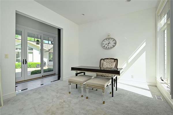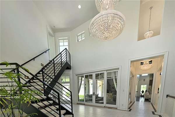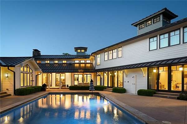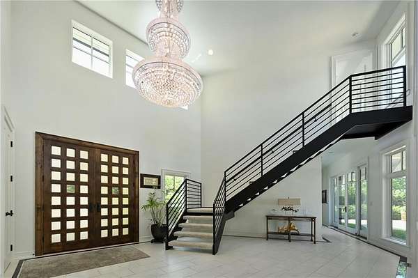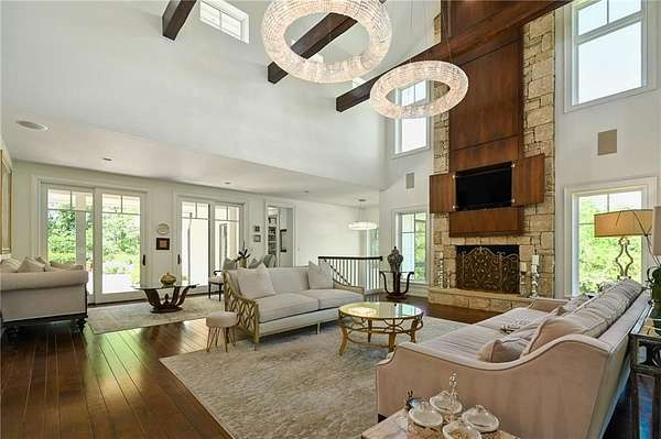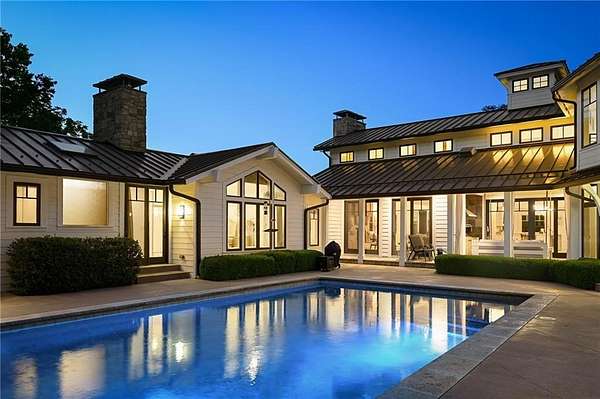 Experience a lifestyle of unrivaled elegance in this one-of-a-kind custom estate, on 2.5 pristine and completely private acres with peaceful pond views. This is not just a home; it's a rare sanctuary for those who demand high end finishes, privacy, and excellence in build quality. Designed with innovation and intention, this 1.5-story home offers a modern, functional floor plan, and seamless indoor-outdoor living. A large scale renovation was done adding a stunning, state-of-the-art chef's kitchen, fully updated bathrooms, and fresh all interior and exterior paint, landscaping and more. The main level features two private offices or flexible living spaces, two covered porches and an outdoor kitchen. Expansive windows showcase panoramic views of the heated saltwater pool and natural beauty of the private acreage. The walk out lower level features media room with theater projector, a bedroom, workout room/ bedroom, wine cellar, and additional light filled office or craft room. Outside there is direct access to the 2.75 mile paved community trail, carefully manicured landscape with new exterior lighting added all around the property. Efficient, green, and low maintenance features were intuitively built, including a metal roof, cement board siding, geothermal heat, Ipe wood decking, new whole house water softener and energy efficient windows. This gated community offers many acres of conservation preserved nature, waterfalls, and party barn, lake activities on a a 20 acre lake and 6 stocked ponds. Location, gorgeous privacy, and upscale amenities complement this stunning estate home inside and out.