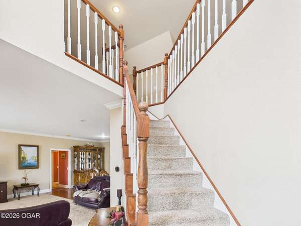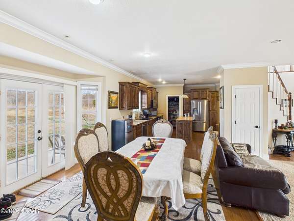 Discover the perfect blend of comfort and countryside living in this impressive 2,613 square foot home nestled on 7 beautiful acres between Joplin, Seneca, and Neosho. This well-designed two-story residence offers the space and versatility today's buyers are seeking. The thoughtfully laid-out floor plan features 3 bedrooms and 3 full bathrooms, providing ample space for family and guests. The main level offers convenient single-level living, while upstairs you'll find 2 additional bedrooms, a full bathroom, and a bonus second living space-ideal for a family room, home office, media room, or recreational area. Practical features include a 2-car attached garage and a paved driveway for easy year-round access. The expansive 7-acre property showcases the best of both worlds with a mix of cleared land perfect for gardens, recreation, or livestock, and mature wooded areas offering natural beauty and privacy. Whether you're seeking a peaceful retreat, room to roam, or a place to make your own, this home offers endless possibilities.