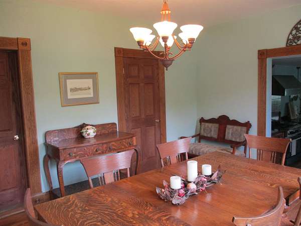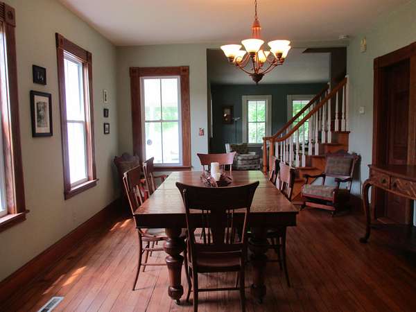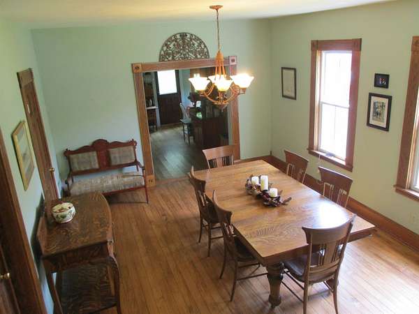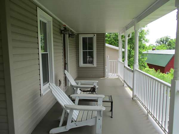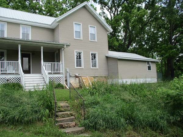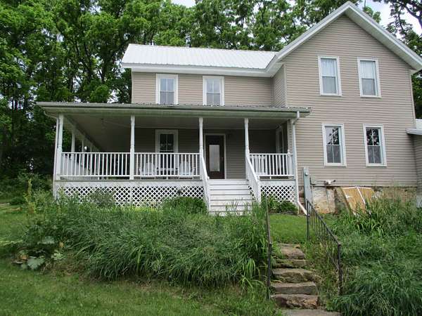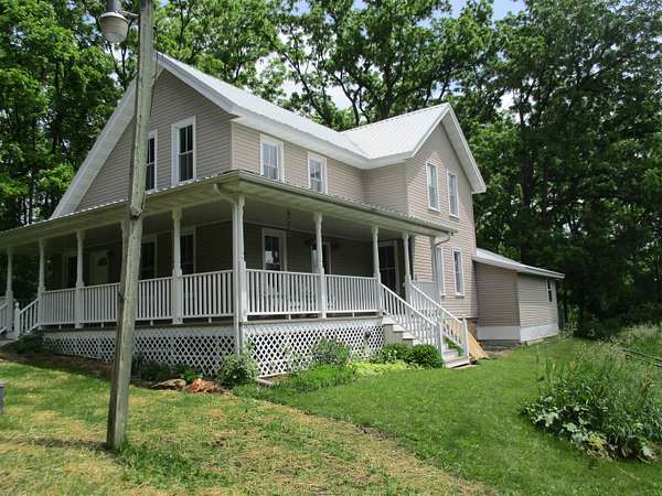 Country roads take me home to the place I belong - Here it is, down a long gravel driveway, this beautiful remodeled farm house with wrap-around covered porch, wood & marble flooring, wood fireplace, large living room & dining room, working pantry and more, sits on 80 acres. Outbuildings include a garage/workshop w/garage doors on each end to conveniently park the cars and still bring in the toys or lawn equipment. 2 older buildings that have steel roofs but still need some work. Spring feed pond with walk-way 2/3 around it and lots & lots of woods with great hunting & more. Well put in 2025, newer Septic, Remodeling done since 2000. Must take your time looking over the property so plan a nice afternoon to see your new country home.
