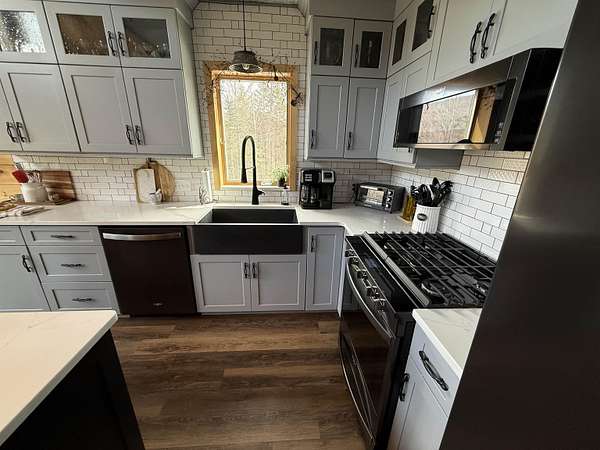 Remarkable home that has been the owners labor of love. This house was purchased as an unfinished structure in 2014. The owners worked on it for several years pouring their hearts and souls into creating the perfect retirement home. They are now ready to move on to another project so this creates an amazing opportunity to own a first class house with a stunning view of Mt Moosilauke! Custom kitchen, quartz countertops, custom appliances, tin ceiling, gorgeous reclaimed old growth heart pine staircase, stone hearth, shiplap pine vaulted ceilings, built-ins, entire house spray foam insulation, generator, private winding driveway, drive under garage, expansive deck as well as a closed in porch. Lots of personal touches, lots of creative details. This is a unique and well done home!