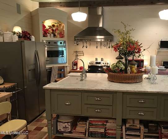 This ia a gracious Louisiana raised cottage on ten fenced acres with a 2 stall barn and a lovely lake. There are porches across the front and rear of the house. The front porch overlooks a lake. The home has high ceilings and heart pine flooring. The kitchen is very large and has French doors leading to the breakfast area. Also, the kitchen has large antique beams and a large marble top island. The home features a lot of architectural antiques.The dining room has a hand painted mural commissioned by a local artist. The property offers ultimate seclusion away from neighbors but yet has a community feel. It is very convenient to the city of Madison and Ridgeland for shopping and dining. The property can be divided if so desired. Interior photographs coming soon.