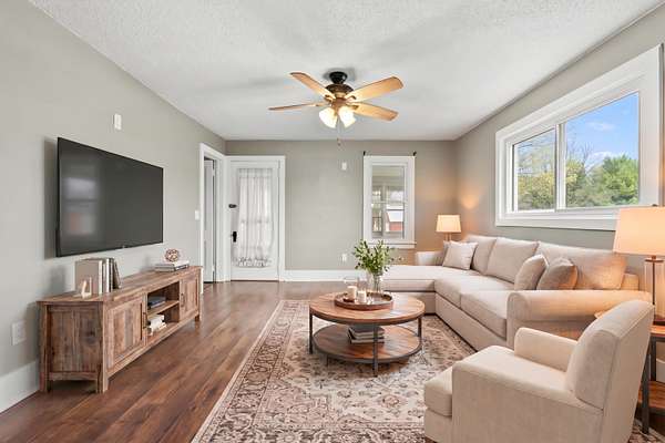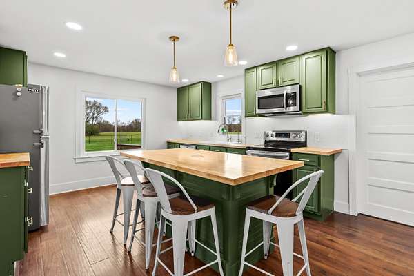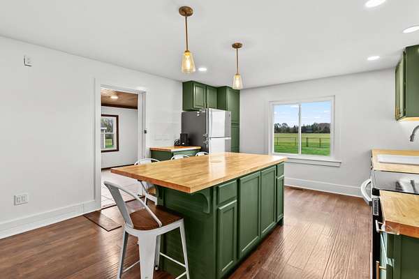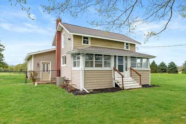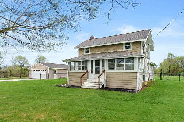 Sitting on 2 sprawling acres, this 4-bed, 1-bath farmhouse has been thoughtfully updated for today's living all while keeping its original charm--starting with a stunning updated kitchen, featuring a large island, charging station and stainless steel appliances. Flowing seamlessly into the generous sized living room creating a unified heart of the home. Retreat to any of the four bright bedrooms, all featuring newer windows and privacy. Whether you need a dedicated home office, a nursery, or guest rooms, the versatile layout adapts to your lifestyle while maintaining that classic farmhouse warmth. A highlight is the oversized 2-car garage, offering ample space for a workshop or equipment. Enjoy peaceful mornings on the porch and endless possibilities in the backyard. A rare find that combines acreage, updates, and affordability.