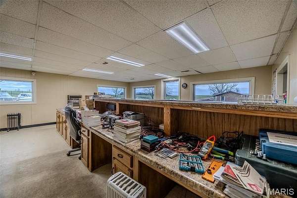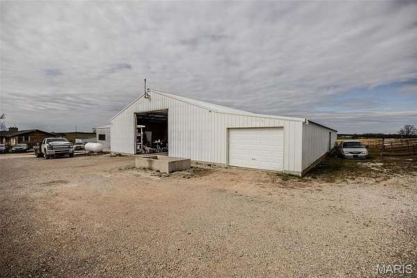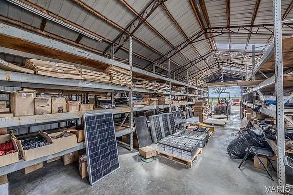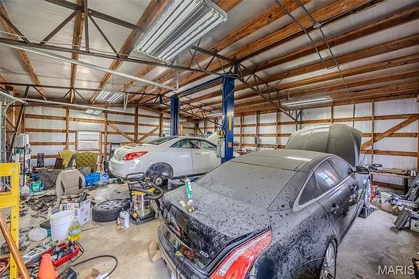 This exceptional property offers a 2,496 square foot brick and stone home situated on 35.7 acres, providing both privacy and ample space for a variety of uses. The home features a spacious layout with high-quality finishes, making it ideal for family living or entertaining. In addition to the residential space, this property includes over 14,000 square feet of versatile shop space, with 4 separate shops, over 1100 sq. ft. of office space including 2 bathrooms, perfect for business operations, hobbies, or storage. With excellent road frontage, this property is ideal for commercial businesses such as a trucking company, manufacturing facility, or distribution center, and more. The expansive land offers endless possibilities for outdoor activities or future development. An incredible opportunity for business owners and investors!