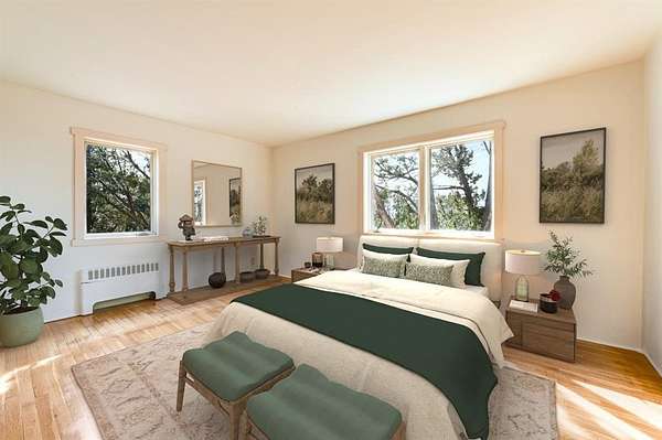 RARE INVESTMENT OPPORTUNITY! Just minutes from the Historic Santa Fe Plaza, this property sits on 2.95 view filled acres. This is one of two original homes built on Bishops Lodge dating back to the early 1950s. This is an investor's dream; add to the existing home, build a guest house or build your dream home on the adjacent lot. This gated home consists of 3 bedrooms, 2 1/2 bathrooms, a gracious living room, a formal dining room, an office, 3 outdoor sitting areas, and a 2-car garage. Enjoy the stunning sunsets and mountain views from the back portal. On a clear day, you can see over 100 miles from both directions. There is a new furnace and a tankless hot water heater. This house has been virtually staged. Ask about the separately deeded 2.970-acre lot next door that can be purchased for $280,000.