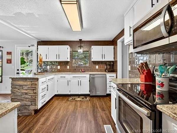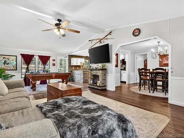 WOW! Dream come true for those love the lake life. Close to Keystone Lake. Community Boat Dock 3 miles away. Beautiful wooded 5 acres on quiet country road. Nice updates to home which is semi open and split bedroom plan. Spacious living and dining, 3 good size bedrooms all with walk in closets.