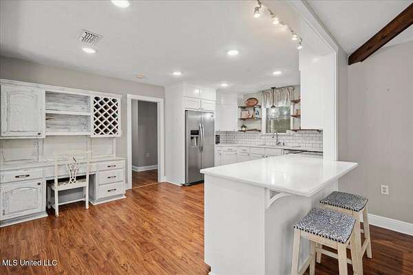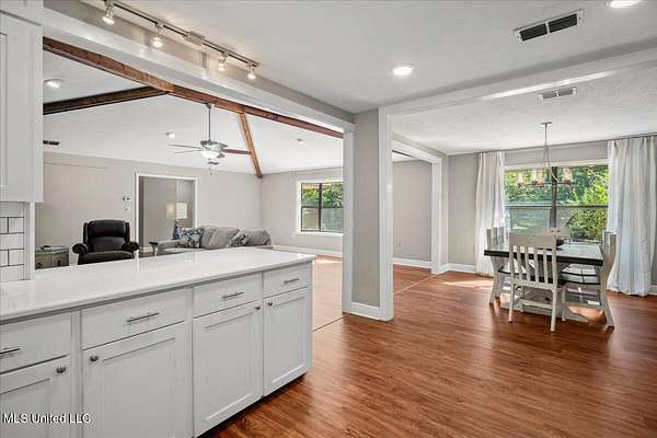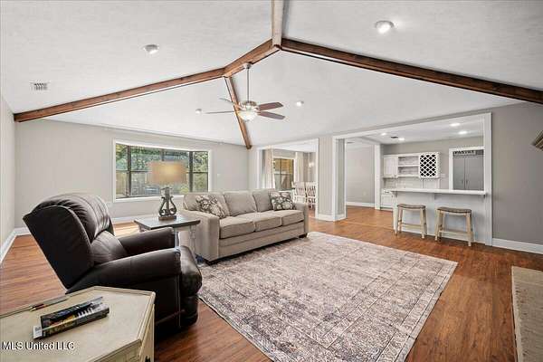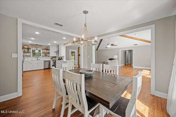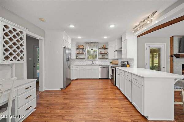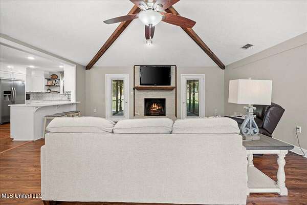 Renovated 4-Bedroom Country Home on 7.5 Acres Near TownDiscover the perfect blend of modern updates and country charm with this completely renovated 4-bedroom, 2.5-bath home situated on 7.5 acres just minutes from town. Inside, you'll find an open floor plan designed for both everyday living and entertaining. The living room boasts a vaulted ceiling with exposed beams and a cozy fireplace as the centerpiece. The kitchen is equipped with quartz countertops, a convenient built-in desk space with a wine rack, and a seamless flow into the dining and living areas. This home features four generously sized bedrooms, including a primary suite with an updated bath, plus a convenient half bath for guests. Every detail has been thoughtfully designed to provide modern comfort in a timeless setting. The 7.5-acre property is shaded with beautiful mature trees, offering both privacy and tranquility. The screened back porch is perfect for enjoying pleasant evenings outdoors. There are also multiple outbuildings, including a garden shed, a charming ''she shed,'' a pole barn, and an RV port--making this property as functional as it is inviting. Situated just outside of town, you'll enjoy the peace of country living while remaining close to shopping, dining, and schools. Don't wait to call your favorite agent for your private showing!