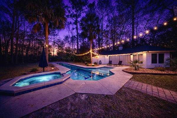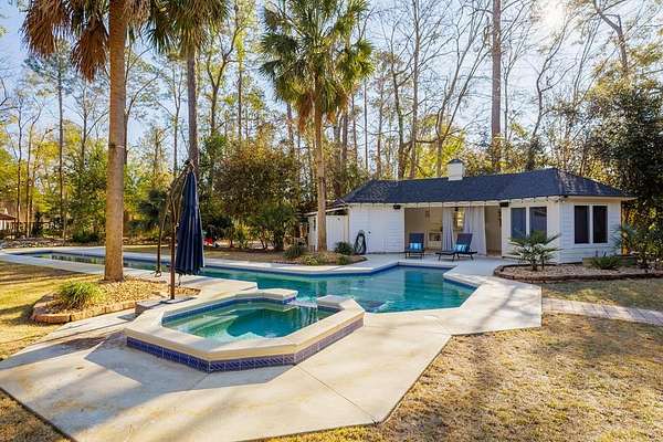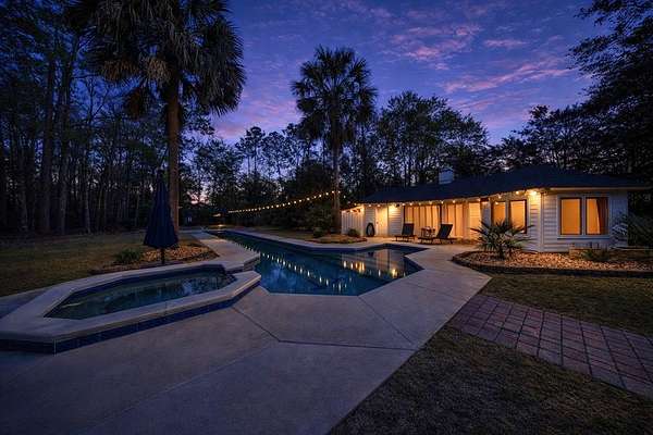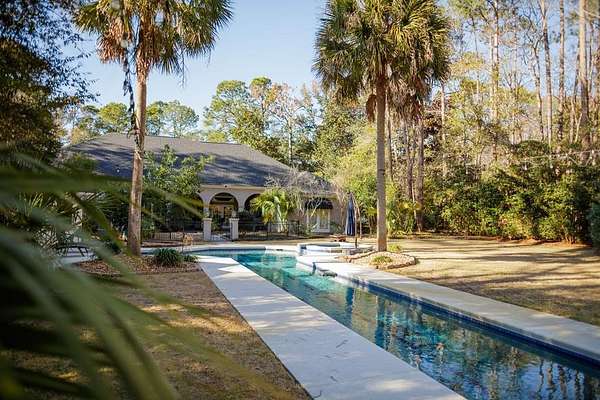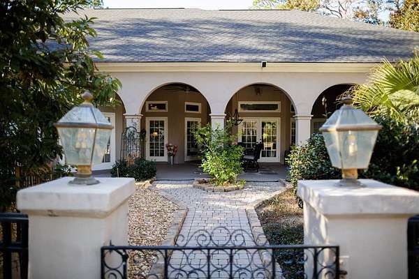 Welcome home to your own personal villa, where elegant design meets durability. Privacy abounds on this 1.6 acre lot with mature landscaping (including citrus trees), fenced perimeter and unique floorplan. Enjoy the view of the heated lap pool from the covered patio or pool house. NEW ROOFS! on both the home and the pool house. NEW WHOLE HOUSE GENERATOR!! Inside, the home features intricate detail from the lincrusta ceiling border in front rooms, curved archways, hand-painted murals, antique solid wood front door, 18" Italian limestone floor tiles, vaulted ceilings and more. There's room for everyone in the kitchen with a gas range, Kitchen Aid appliances, two islands with sinks, hand formed back splash, extensive cabinetry and dual pantry closets. The downstairs in-law suite is accessible from inside the house or its own exterior door. The master suite occupies the left wing of the home with spacious walk-in closet, 3ft mosaic floor tile in the master bath, luxurious walk in glass shower, jacuzzi tub and doors out to the patio from the bedroom. Need extra space for indoor entertaining? Bonus room plus extra bathroom is located above the garage with a walk out attic - extra decking added for storage!! The home has been lovingly maintained with over $100k in improvements in the last five years. Move in ready.